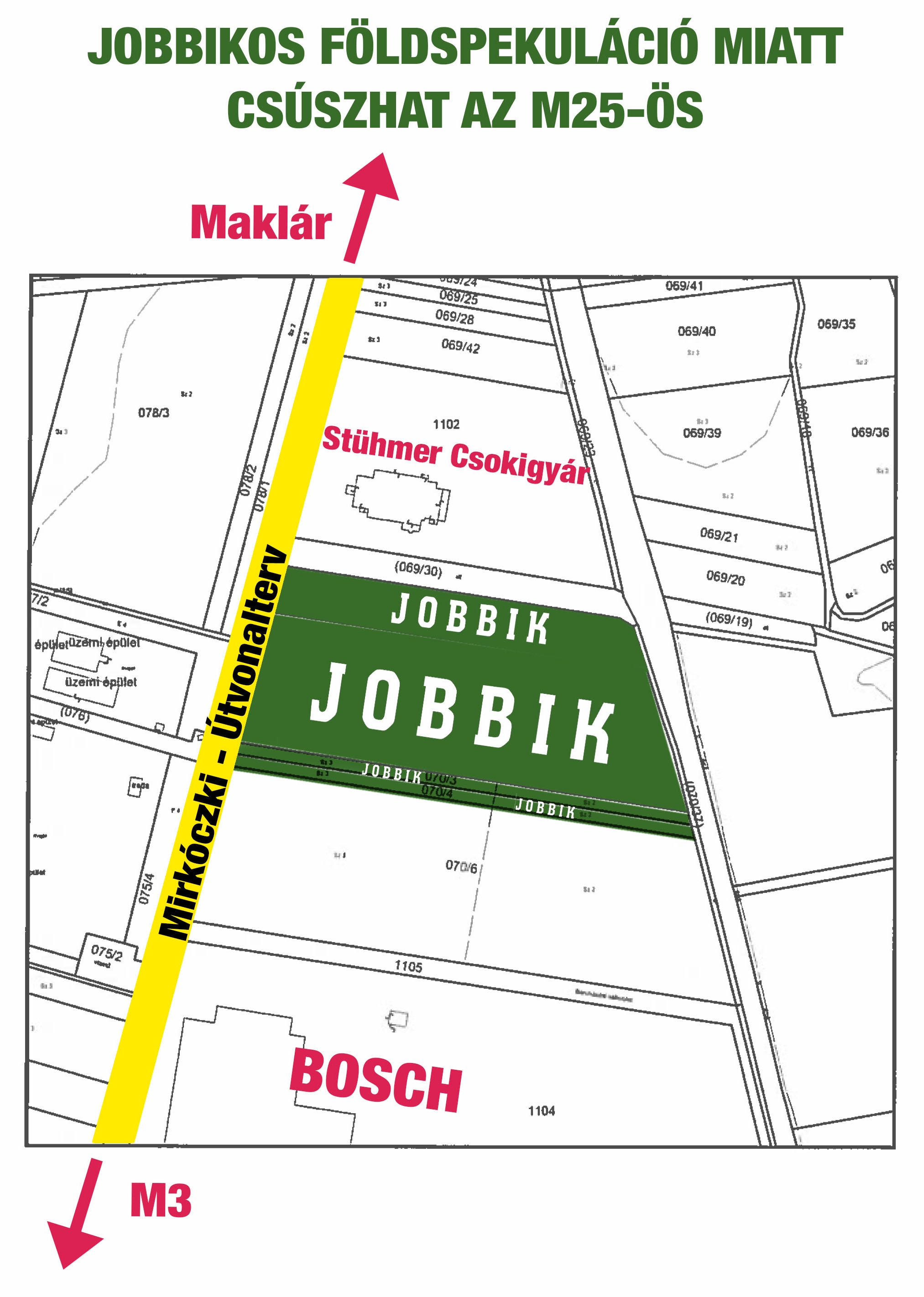 A közleményben azt írják, hogy a Fidelitas birtokába került térképek alapján tisztán látszik: az új útvonal a jobbikos Tóth István földjeit érintené, ezért a szükséges kisajátítások miatt tetemes összeg ütheti a markát a jobbikos vezetőnek.