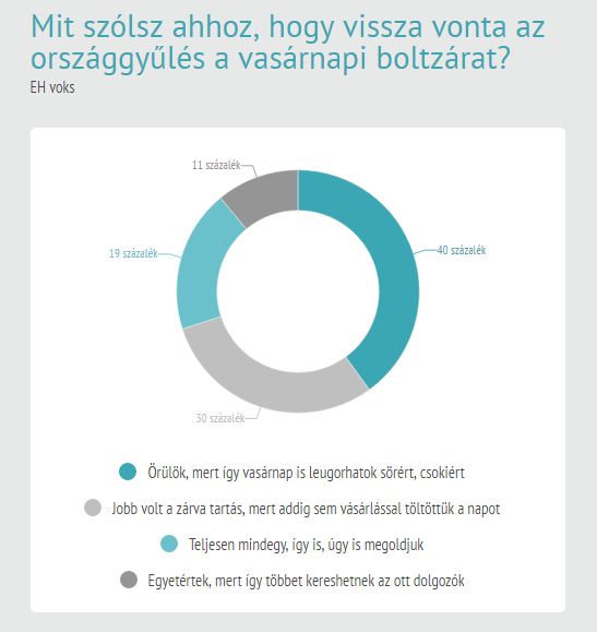 EH Voks rovatunkban arról kérdeztünk titeket, mi a véleményetek arról, hogy visszavonta az országgyűlés a vasárnapi boltzárat? Ti pedig így szavaztatok.