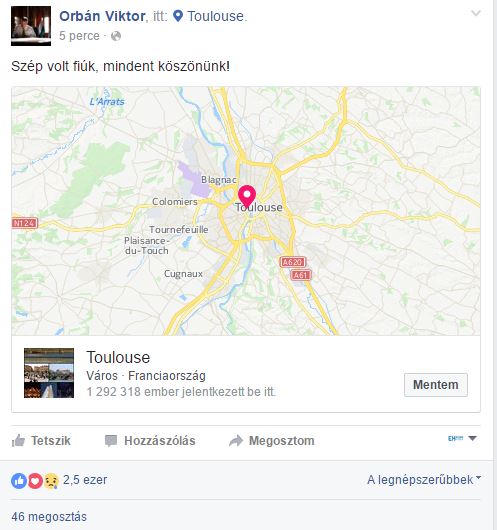 Orbán Viktor a helyszínről, Toulouse-ból köszönte meg a játékot: