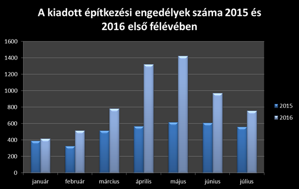 A második negyedévben az utóbbi évek legszembetűnőbb változása volt tapasztalható, a növekedés 2,56-szoros volt 2015 azonos időszakához képest. Az év első felében összesen több mint 13 ezer engedély került kiadásra, ami a tavalyi év teljes engedélyszámát felülmúlta.