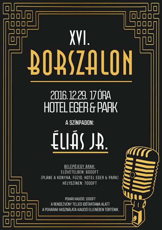 December 29-én délután 17 órától a Szálloda utca 1-3 alatt a Hotel Eger Nagytermében rendezik meg a XVI Egri Borszalont, ahol a sztárvendég Éliás Jr. lesz, majd 23 órától Dj Turcsányi gondoskodik a hangulatról. Ezt követően pedig After buli lesz a Ligetben!