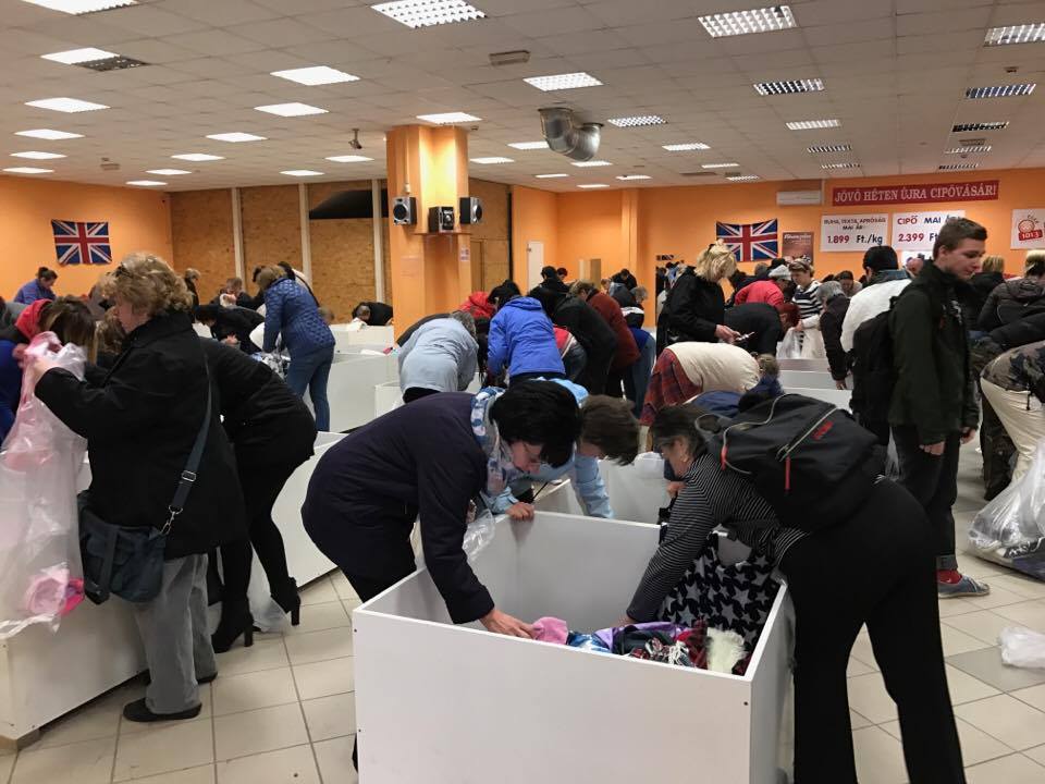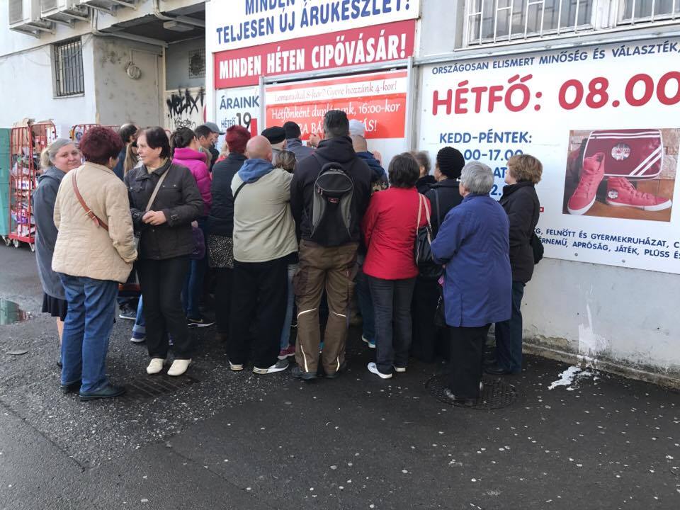 Hétfő reggel látványos jelenségre lettünk figyelmesek a Domus alatti turkálónál, ahol egy kisebb tömeg az ajtóra tapadva várt a nyitásra.