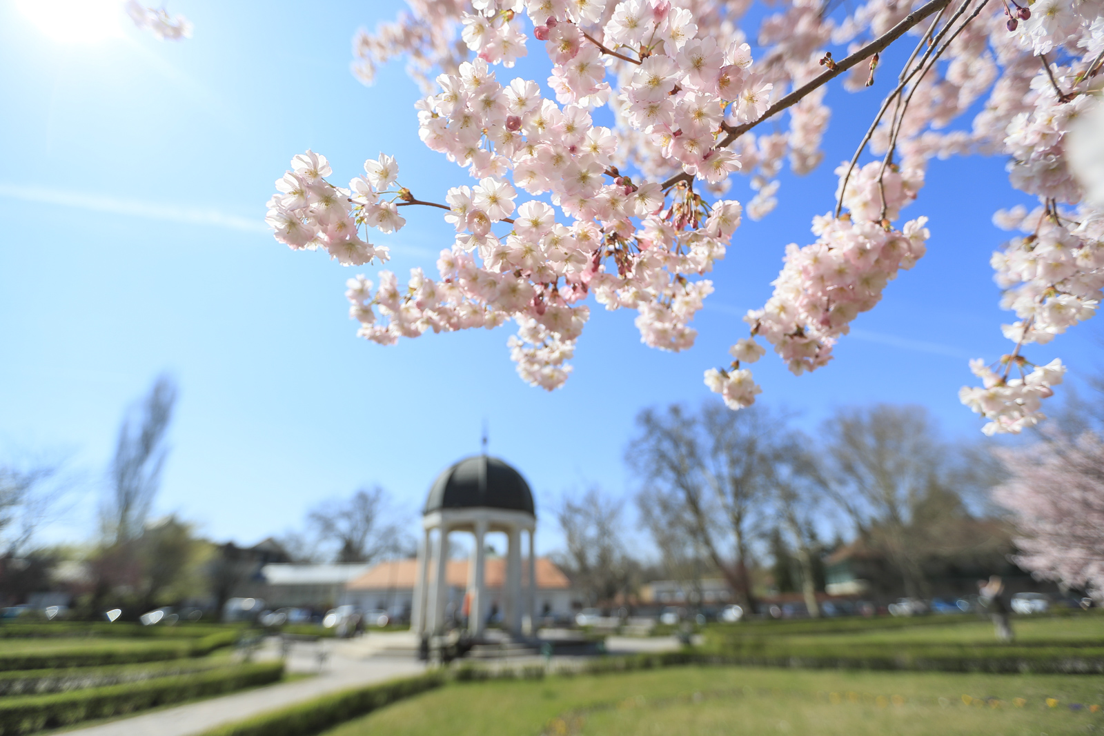 Bátran mondhatjuk, hogy a napokban a Dr. Agyagási Dezső Gyógypark Eger egyik ékessége. Ahogy a fotókon is láthatjátok, csodálatos színek uralják a teret, amely a cseresznyefa-virágzásnak köszönhető.