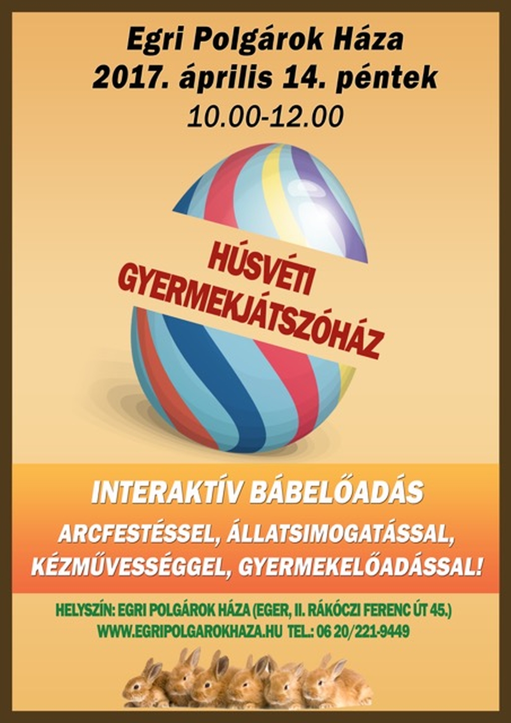 Húsvét közeledtével április 14-én 10 órától várják a kicsiket a Polgárok Házában, ahol többek között állatsimogatás és interaktív bábelőadás várja a gyermekeket.