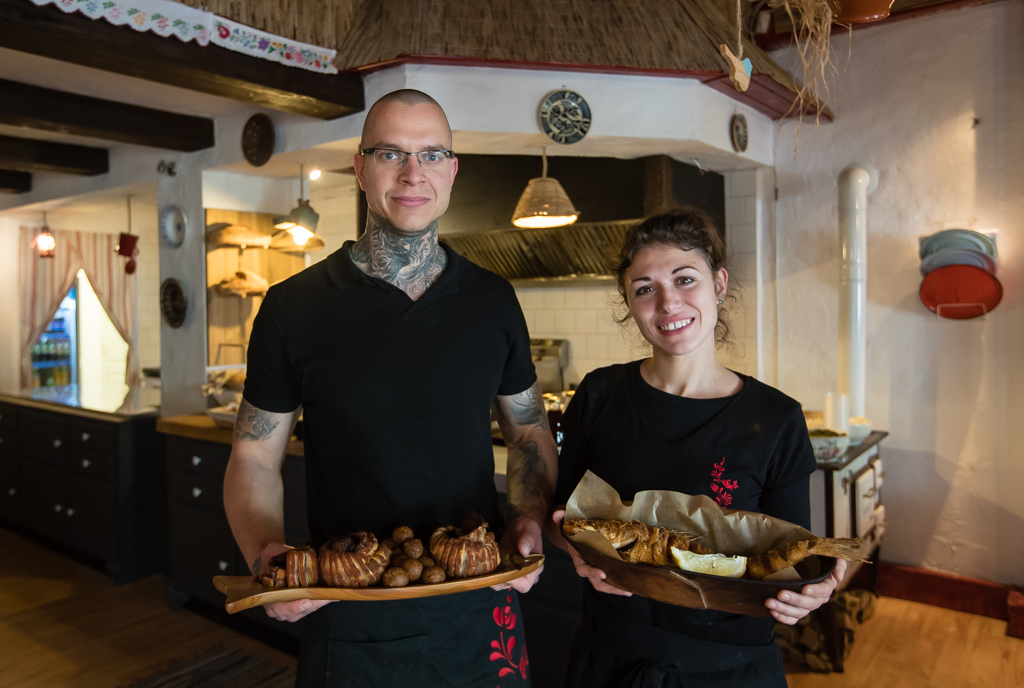 – Persze, hogy nem eszünk sok halat, hiszen kapni is alig lehet –veszi át a szót Péter. Kései ebédidőben látogattuk meg a nagyjából két hete nyitott éttermet és kérdés nélkül megtudtuk, hogy a haltepertőt a harcsa hasából készítik és tervezik a harcsapaprikás étlapra vételét is. Az infókat onnan csippentettük le, hogy nagyon lassan haladtunk a beszélgetéssel, mert elég nagy volt a nyüzsi és az újdonság varázsa már most népszerűvé tette a helyet.