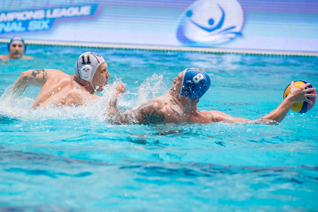 A ZF-Egernek életbevágó volt, hogy hazai pályán behúzza a győzelmet, mert eddig ez nem sikerült a bajnoki döntőben. Ehhez képest Varga Dénes góljával indult a meccs, emberelőnyös helyzetet használt ki a szolnoki játékos. Az egri támadások hatástalanok voltak, eladott labdák, rossz lövések jellemezték a hevesieket. Sőt, Kis Gábor kiharcolt egy ötméterest, amit Prlainovic értékesített, 0-2 volt ekkor az eredmény. Kevesebb mint három perccel a negyed vége előtt végre az egriek is megvillantak, név szerint Biros Barnabás, aki egy emberelőnyös szituációban talált be. Prlainovic azonban néhány másodperccel az első játékrész vége előtt újabb gólt jegyzett, így kétgólos szolnoki előnnyel fordulhattak a csapatok a második negyedre.