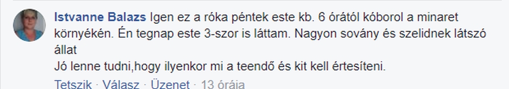 Azóta többen jelezték, hogy ők is látták a rókát. Facebook oldalunkon, a hír megosztása alatt is jöttek a kommentek, ahol két olvasónk írta, találkozott a vörös bundás négylábúval.