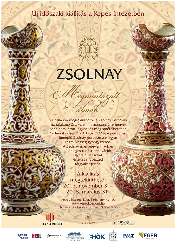 A kiállításon megtekinthetők a Zsolnay Porcelánmanufaktúra Zrt. valamint magángyűjtemények soha nem látott, egyedi és megismételhetetlen Zsolnay-kincsei.