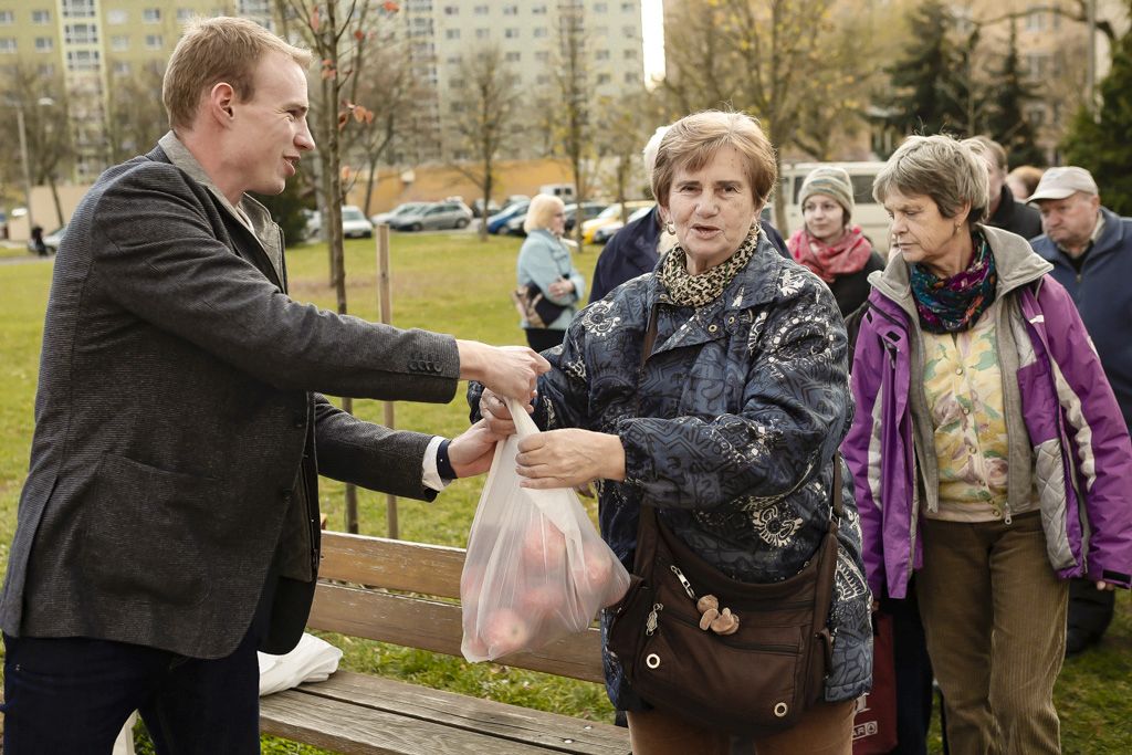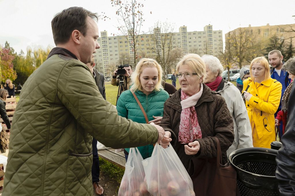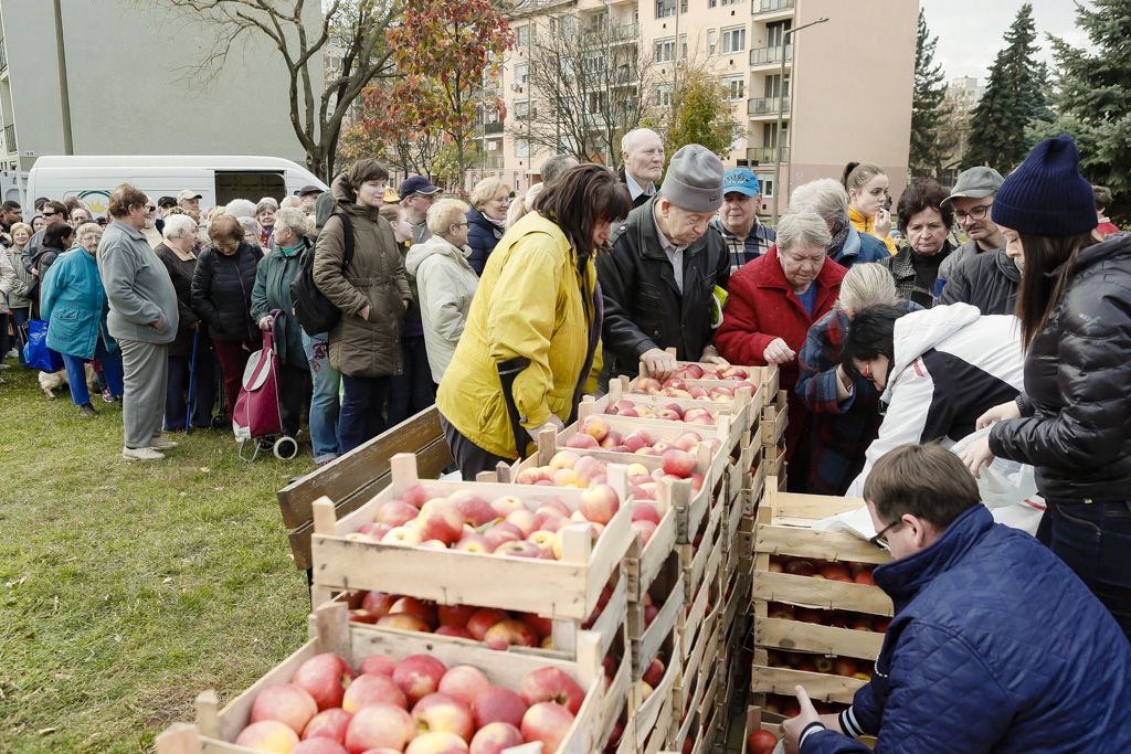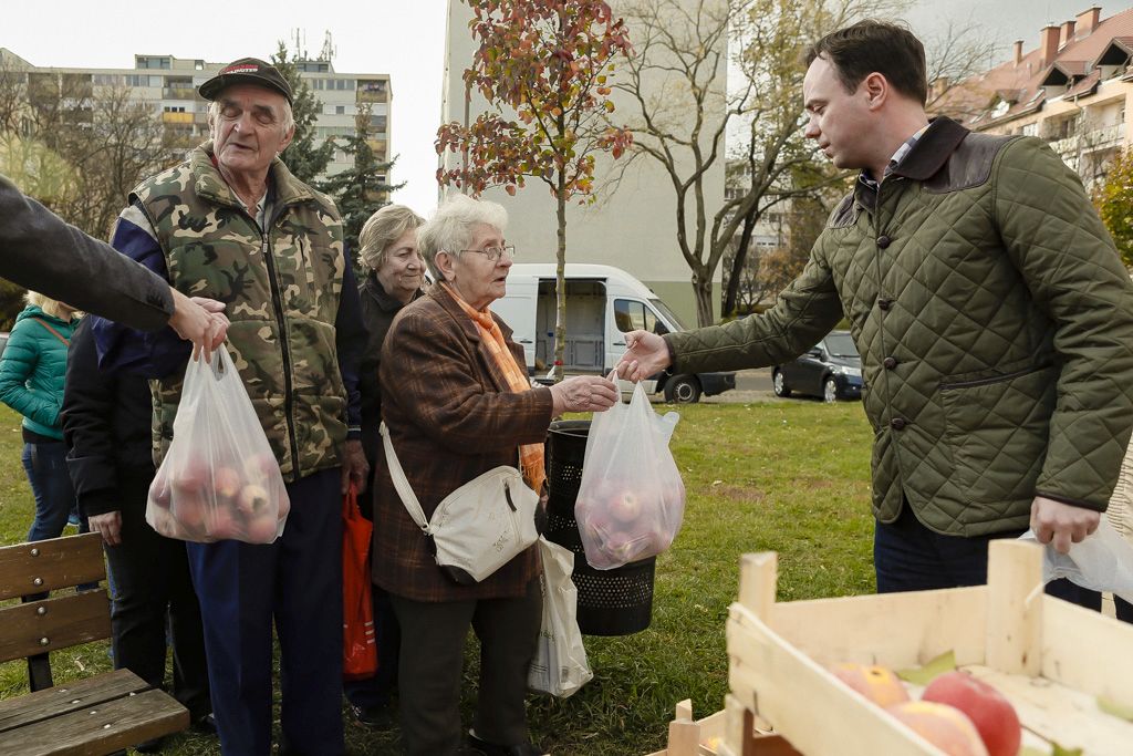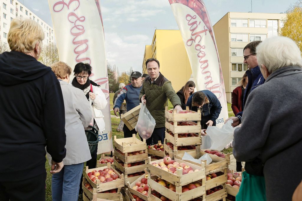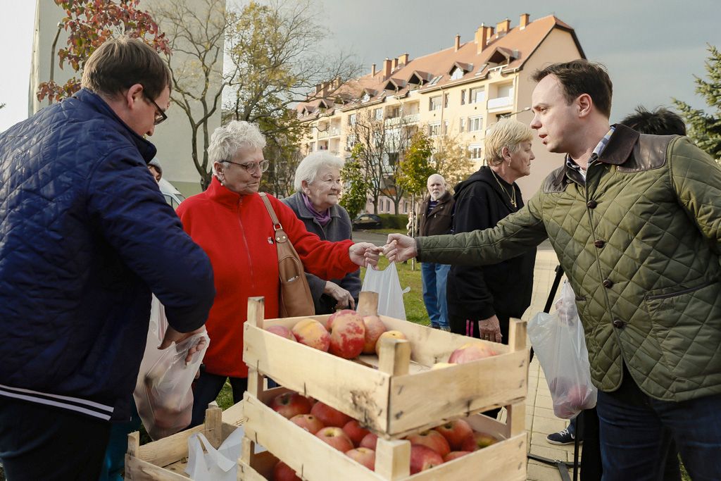 Egy szatyor almát kaphattatok egyenes a termelőtől, ha november 3-án két óra körül a Nemzedékek terén jártatok. Személyenként egy szatyor alma jutott, amít a készlet tartott.