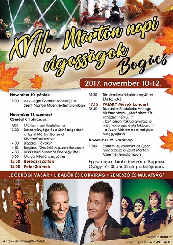 Amint országszerte sok helyen, Bogácson is megemlékeznek Márton napjáról: zamatos újborral, kiváló lúdételekkel és szórakoztató programokkal!