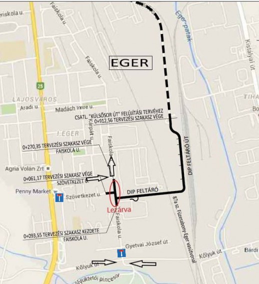 Jelenleg az útszakasz Szövetkezet utca – Faiskola utca találkozásánál lévő csomópontjánál dolgoznak, ami miatt a Faiskola utcai átmenő forgalom (közúti és gyalogos egyaránt) teljes egészében szünetel. A helyi járati buszmegállók sem üzemelnek, a járatok a Kőlyuk úton közlekednek. A kivitelezőtől kapott információk alapján, az építés jellemzői miatt az útzár fenntartására várhatóan ez év végéig szükség lesz majd – olvasható a hkik.hu oldalán.