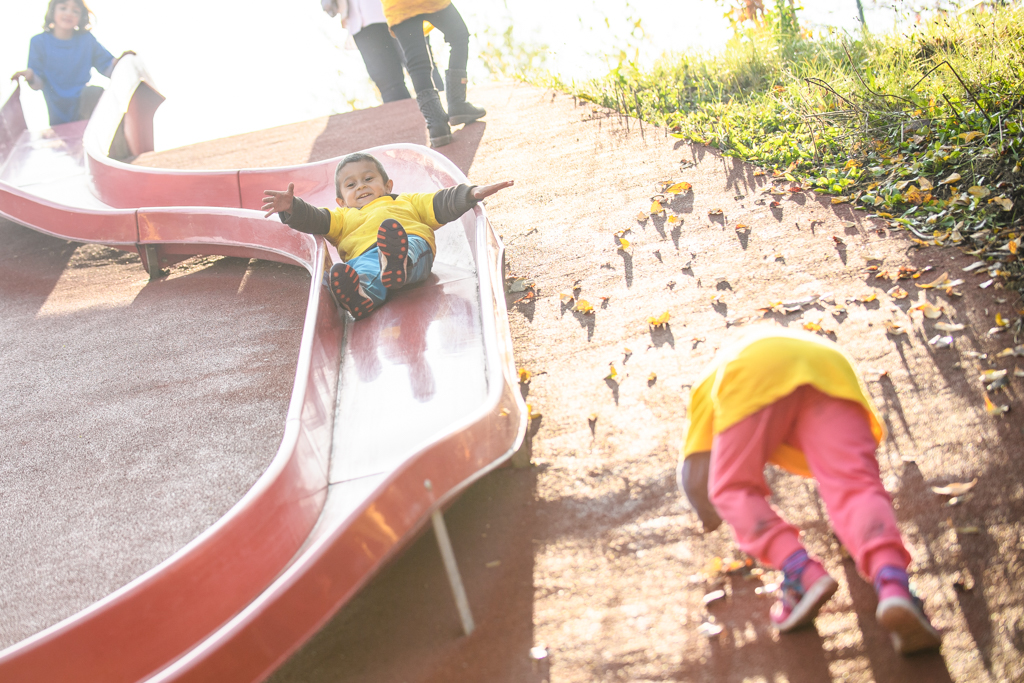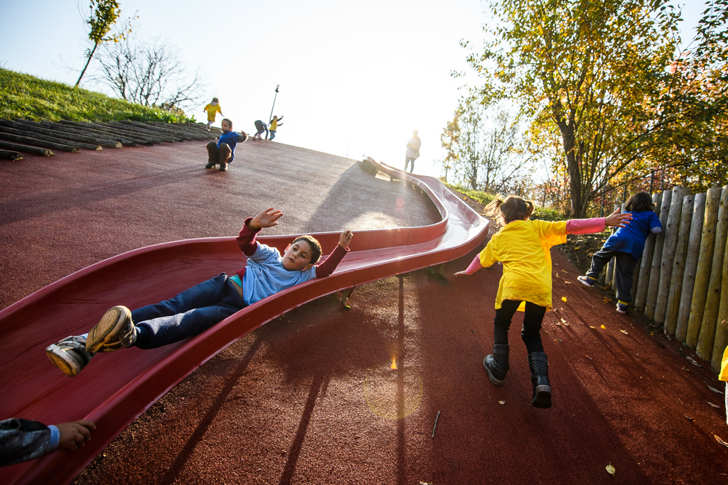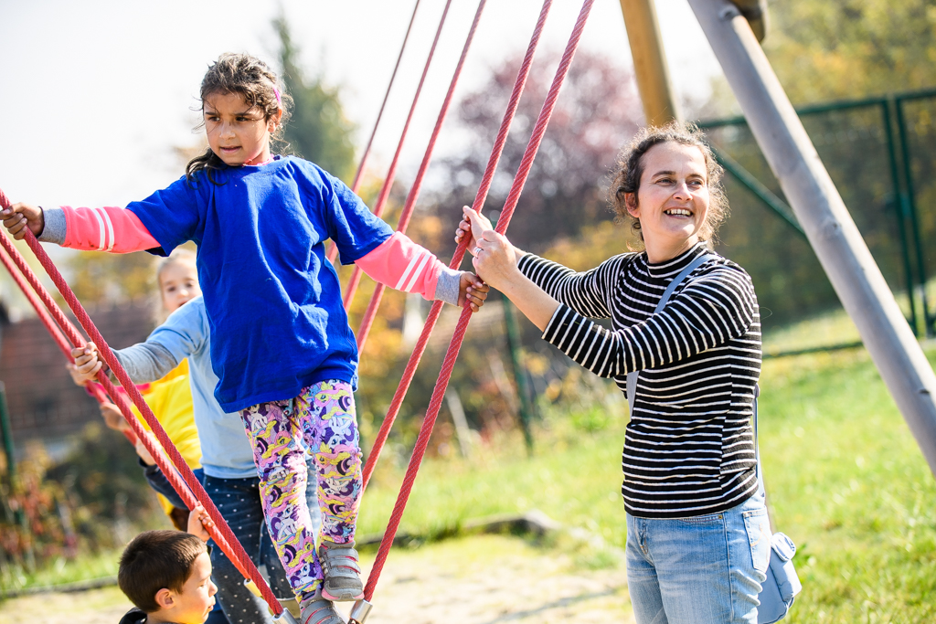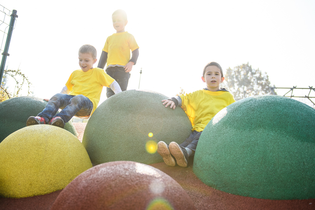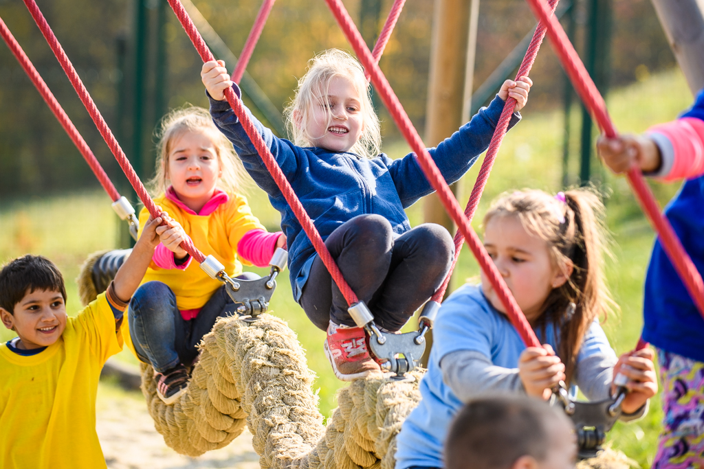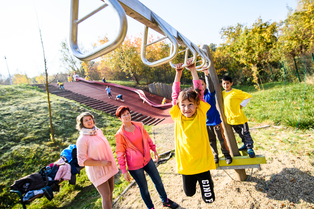A 3 és fél éves Marcitól (jobb szélen) megtudtuk, minden nagyon tetszik neki, a kígyón már egyedül is végigment, de szívesen mászik az alagútba is – Fotó: EH