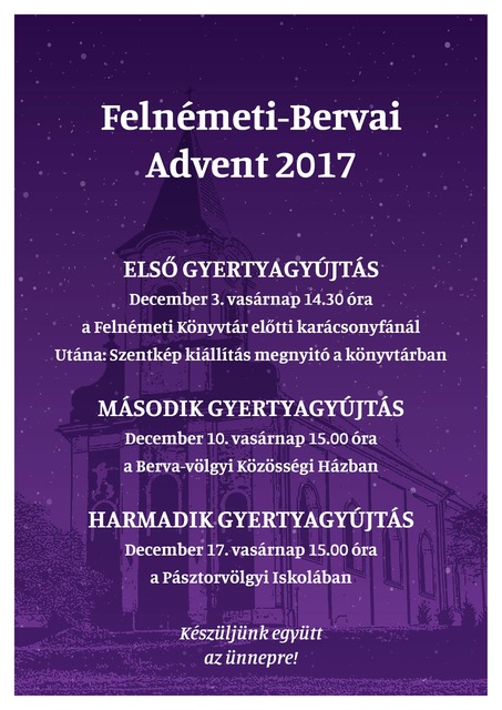 Eger Felnémet és Berva városrészeiben idén is meggyújtják az adventi koszorú gyertyáit, melyre mindenkit szeretettel várnak a szervezők.
