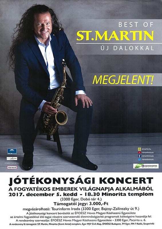 Az ÉFOÉSZ Heves Megyei Közhasznú Egyesülete a Fogyatékos Emberek Világnapja alkalmából Jótékonysági Koncertet rendez, St. Martin előadóművész közreműködésével, támogatásával.