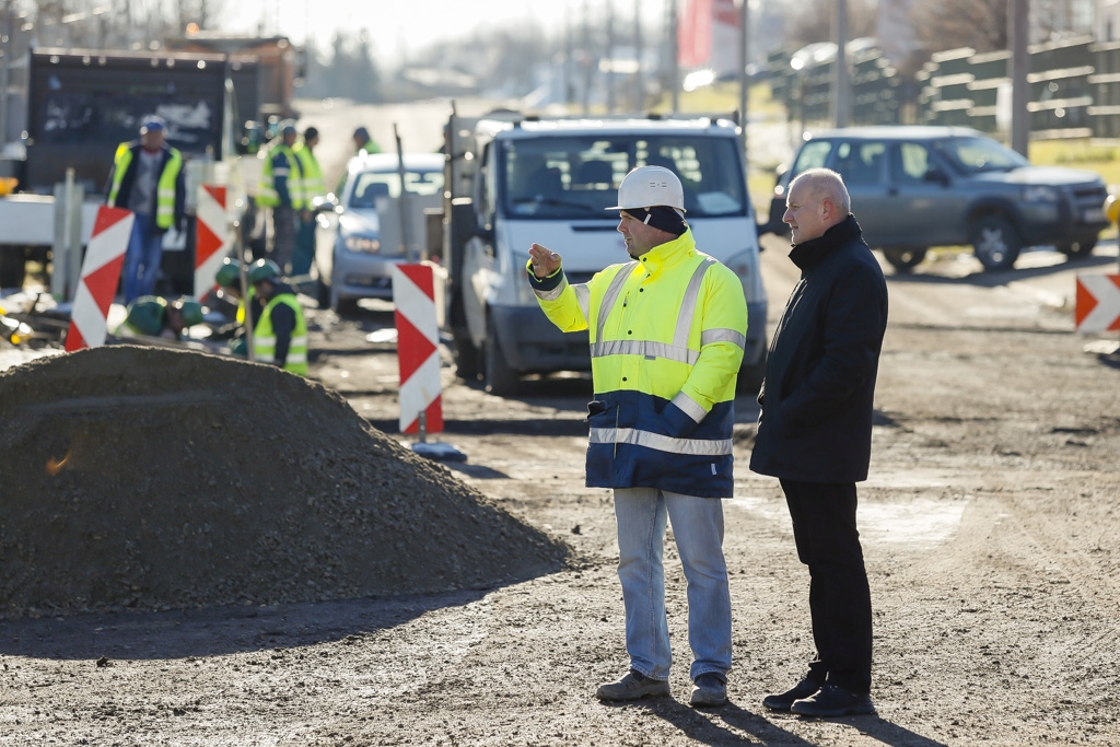 A déli iparterület feltáró út fejlesztése három szakaszból áll, amelyet a tervek szerint jövő tavasszal fejeznek be, hangzott el a Faiskola és a Szövetkezet utca találkozásánál kedden délelőtt.
