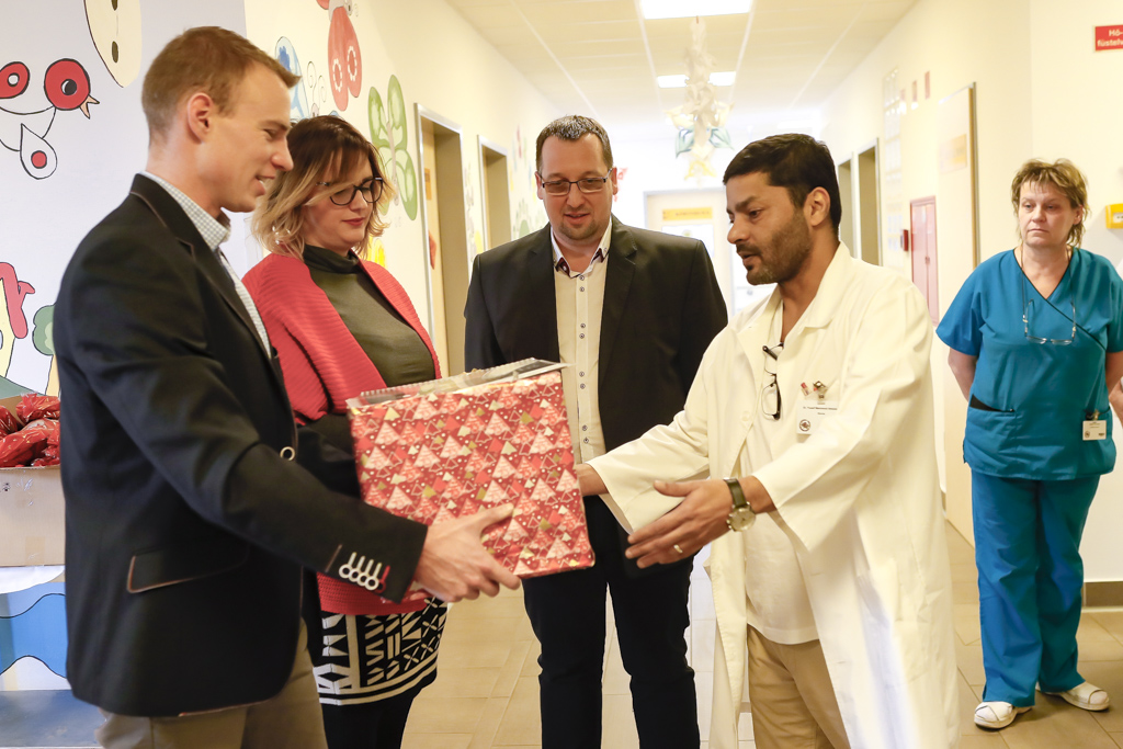 Ezek után Dr. Yousif Mahmood Abdulasis főorvos átvette az osztály dolgozóinak szánt ajándékokat. Ebben naptár, a mindennapos munkavégzéshez szükséges eszközök szerepelnek, majd megajándékozták a kis betegeket is egy-egy mikulás csomaggal.