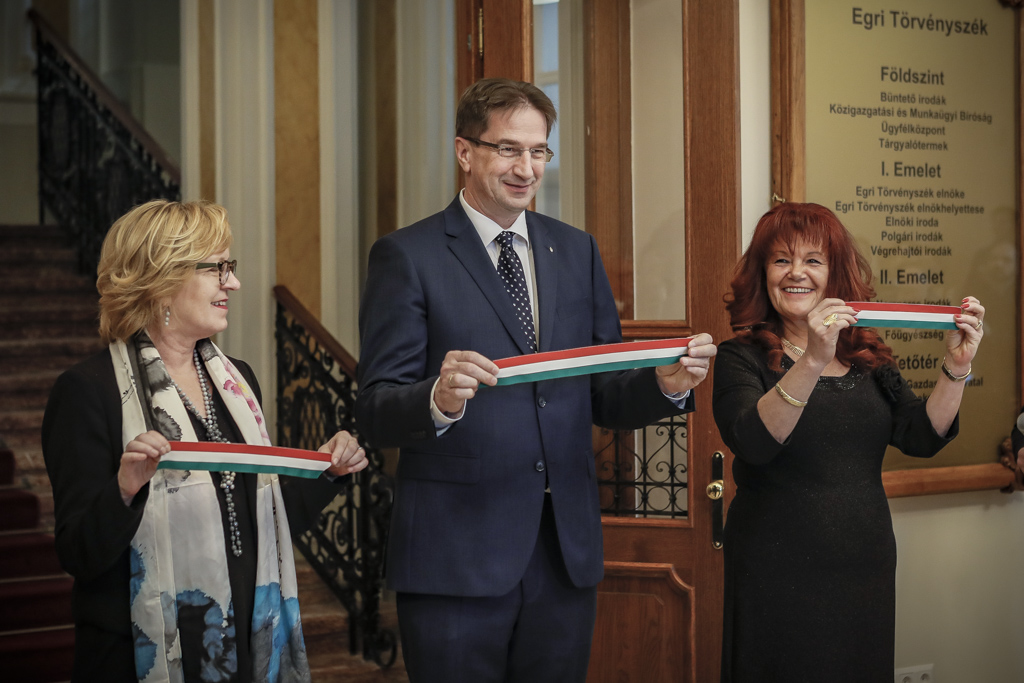 Közel 3 és fél milliárd forintól újult meg az Egri Törvényszék épülete, a beruházás jelentős része állami támogatásból valósult meg. Az Egri Érseki Fiúkórus énekével kezdődött az átadó programja, majd dr. Ternyák Csaba egri érsek szentelte meg az épületet. Ezután következett a szalagátvágás. Dr. Nyíri Beáta, az Egri Törvényszék elnöke beszédében a munkásokat méltatta, azon gondolkodva, hogy vajon mi az oka annak a pozitív hozzáállásnak, amit mindenki részéről tapasztalt az elmúlt két és fél évben.