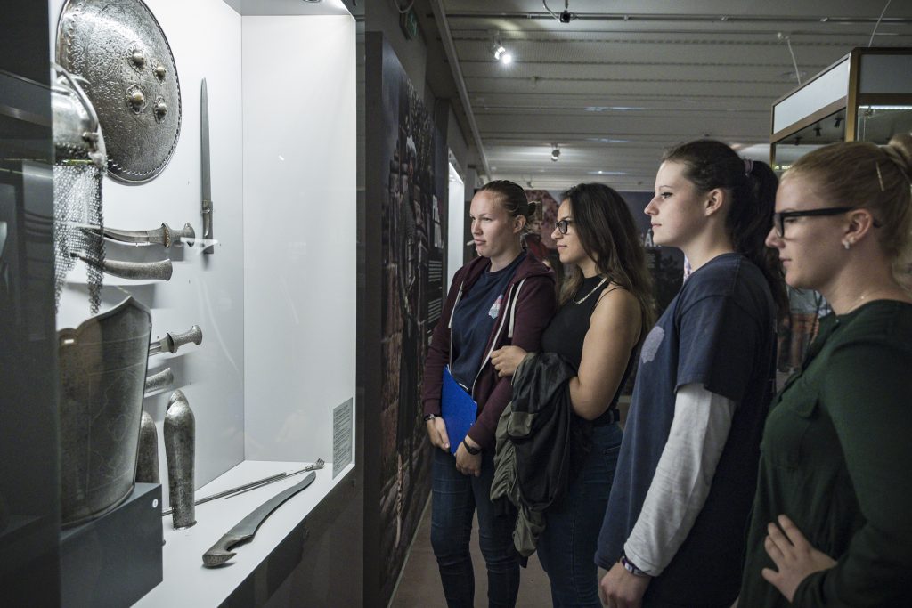 A középkortól az első világháborúban használt fegyverekig, Európától Afrikán át Ázsiáig kalandozhat a látogató. A kollekció gerincét adó török kori és az ezzel párhuzamba állítható magyar fegyverek mellett a kiállítás igyekszik a harcászat átalakulásának lépéseit, a lőpor forradalmi hatását is áttekinteni.