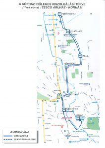 A Csiky Sándor utca rekonstrukciója miatt a helyi járatú autóbuszok a tanév kezdetéig nem tudják megközelíteni a Nagyposta megállóhelyet. Főként az idősebbeknek viszont gondot okoz a kórház és rendelőintézet megközelítése, ezt a problémát igyekszik az önkormányzat megoldani az új buszjárattal. Habis László polgármester a pénteki bejelentésen elmondta: ha a tapasztalatok azt mutatják, hogy hosszabb távon is igény van a szolgáltatásra, akkor ősztől is benne maradhat a menetrendben.