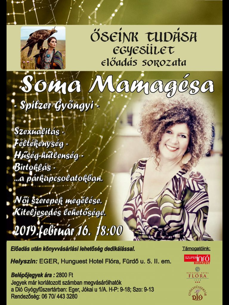 Az Őseink Tudása Egyesület előadás sorozat következő vendége február 16-án Spitzer Gyöngyi – Soma Mamagésa lesz.