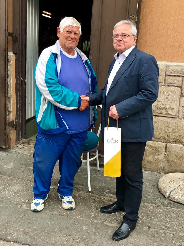„Egy hosszú, sok évtizedes pályafutás zárásához érkeztünk. Jómagam negyven éve ismerem Putyi bácsit és úgy gondoltam, megtisztelem őt egy palack egri borral.