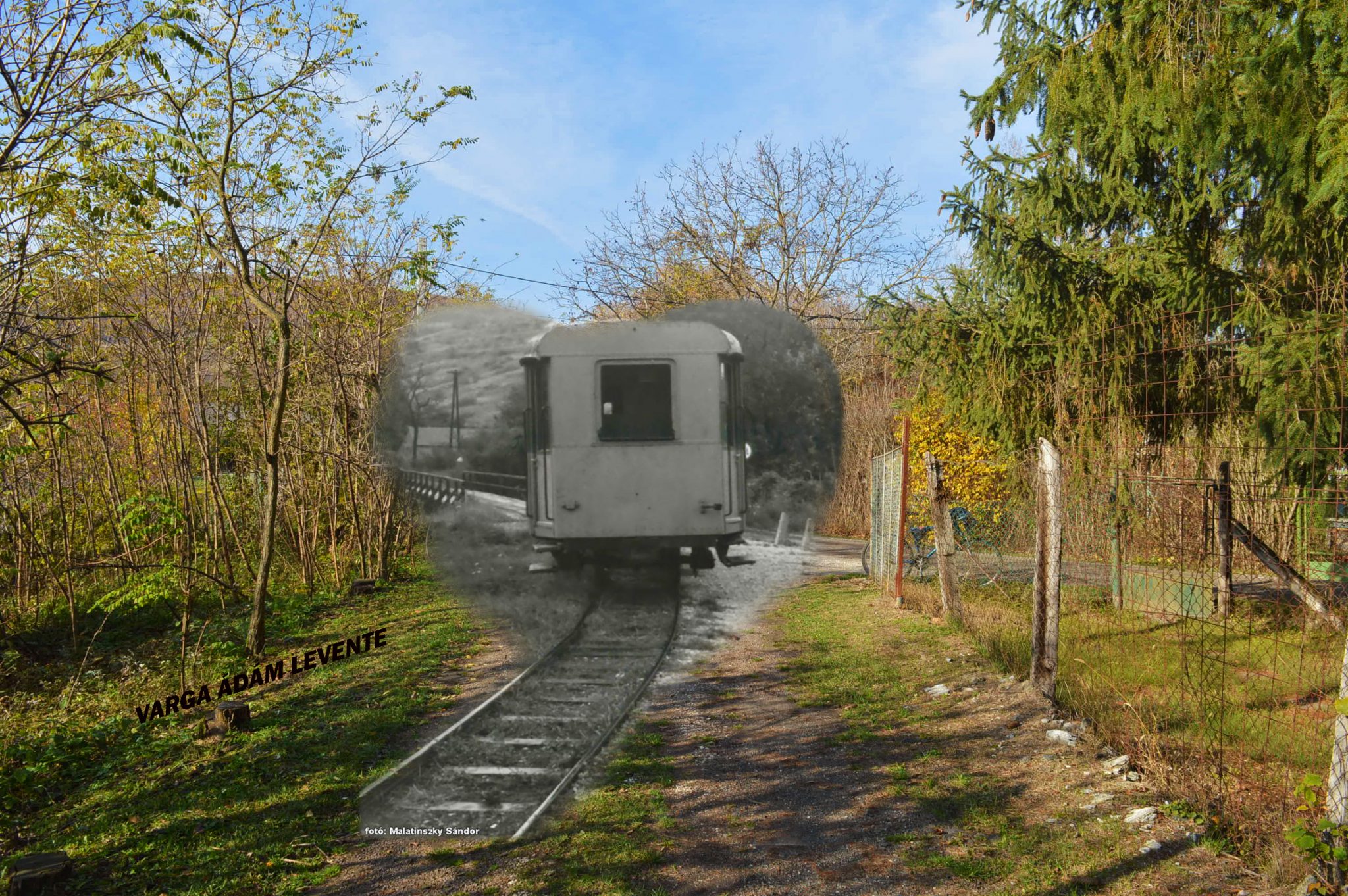 A képpár az almári patakhídnál készült, ami egyébként szintén a kisvasút idejéből származik. A régi (fekete-fehér) képen kisvonat indul az egykori Almár-elő megállóhelyről Keselyűbérc (végállomás) felé. A fotót Malatinszky Sándor készítette. Az új (színes) képen pedig még most is szépen kivehető ugyanazon a szakaszon a kisvasút egykori nyomvonala.