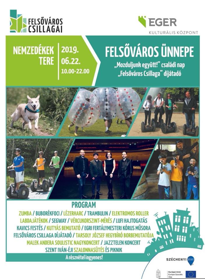 Kiss Renáta, az Egri Kulturális és Művészeti Központ igazgatója kiemelte: június 22-én 10 órától családi sportnappal veszi kezdetét a Felsőváros Ünnepe a Nemzedékek terén. Az eseményen átadják a Felsőváros csillaga díjat, este pedig a Malek Andrea Soulistic és a Jazztelen koncertezik. Hozzátette: a nyár folyamán számos flashmobbal lepik meg majd a felsővárosiakat, augusztusban pedig kenyérszenteléssel is várják az ott élőket.