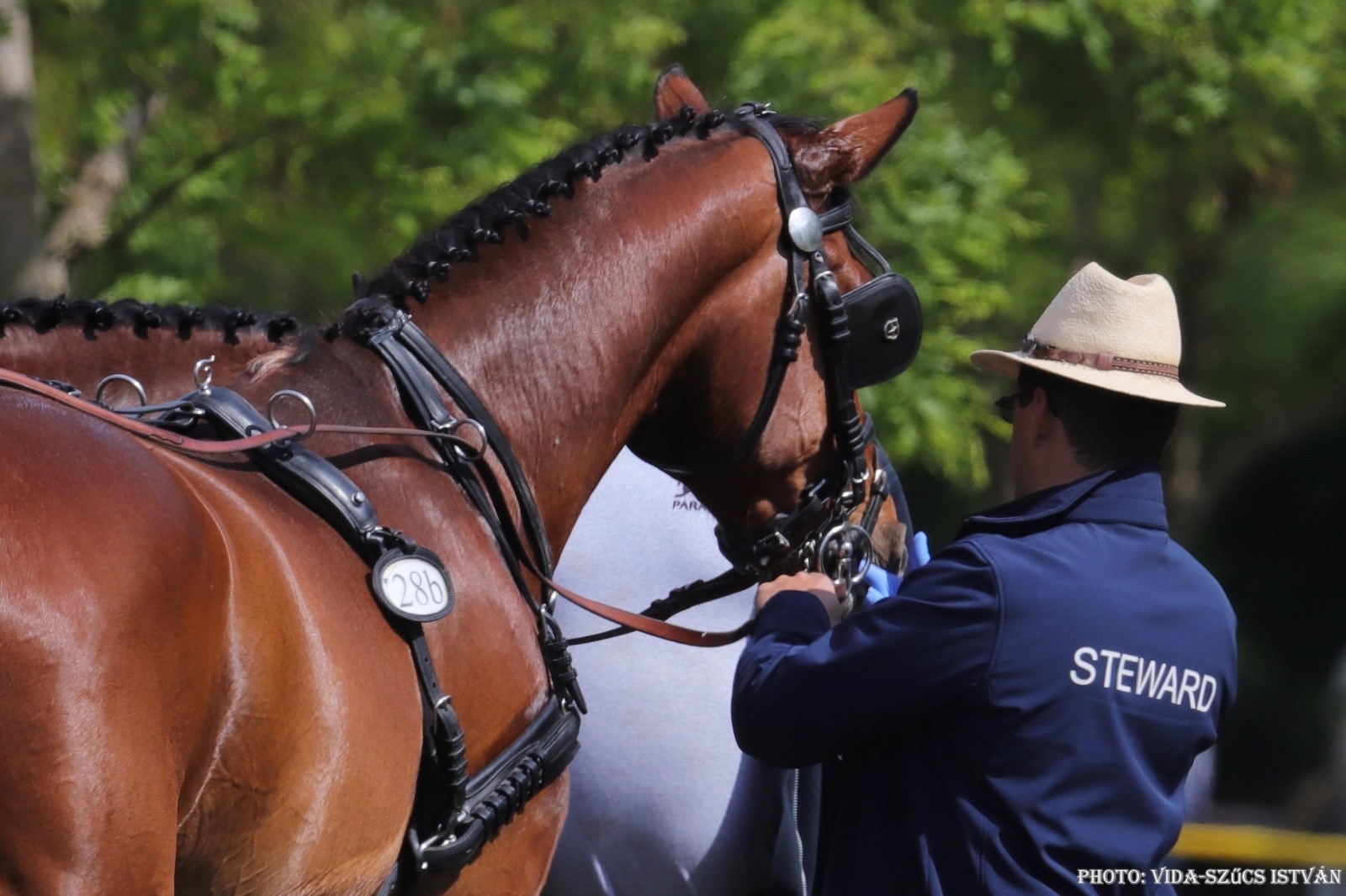 – mondja Ádám, aki a kulisszák mögé is bepillantást enged: „a legtöbbet arról faggatnak minket, hogy miért matatunk a versenyszámok végén gumikesztyűvel a lovak szájában. Nos, ez azért van, mert bizonyos zablatípusokat tilt a szabályzat, illetve így vizsgáljuk meg, hogy nincs-e valamilyen sérülés a ló szájában, mert az esetleges nagyobb, fájó seb esetén nem versenyezhet tovább az adott ló. Ez egyébként elképesztően nehéz, ugyanis a vizsgálatokra kb. 1-1,5 percünk van, ahol sokszor ideges a hajtó és a ló is, némelyik jószág fél a gumikesztyűtől, mert a látványát összekapcsolja az állatorvossal és az injekcióval, ami abban a felfokozott állapotban végképp nem hiányzik neki, ezért nagyon gyorsan, precízen és tapintatosan kell dolgoznunk.