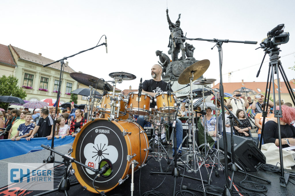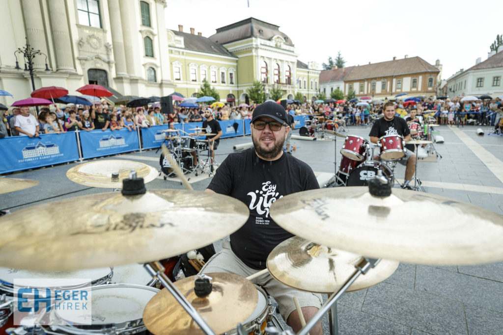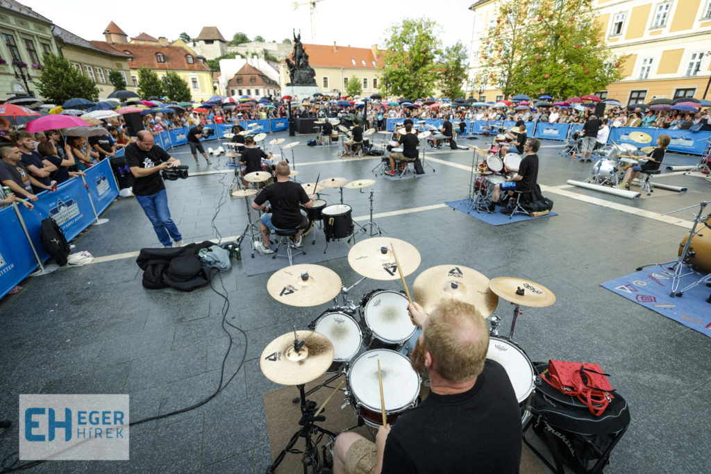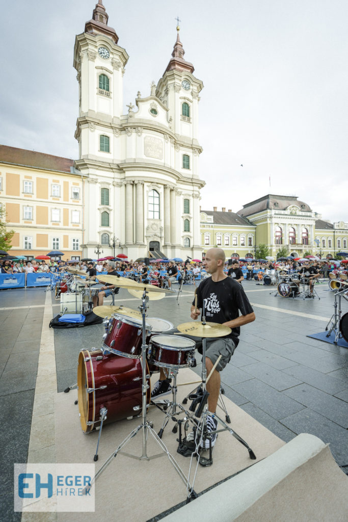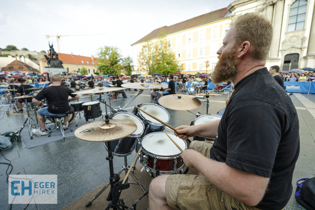 A tavalyi siker után immáron második alkalommal került megrendezésre az Egy Ütős Nap Egerben című zenés program a város szívében a Dobó téren, 23 dobos közreműködésével. Gulyás László az egri Farkas Ferenc Zeneiskola igazgatója, mint az esemény ötletgazdája elmondta: ez a rendezvény az Egri Ifjúsági Zenei Program (EIZP) keretében valósulhatott meg, önkormányzati támogatással, mely tovább bővíti Eger egyébként sem szerény programkínálatát. Nemes Róbert fotói.