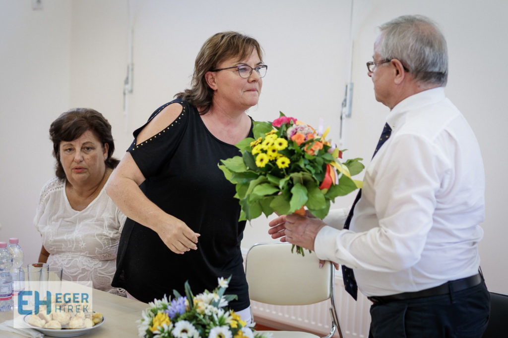 Habis László polgármester az óvoda bejárása előtt, egy virágcsokorral köszöntötte az óvónőket új munkahelyükön, és kívánt nekik eredményes munkát.