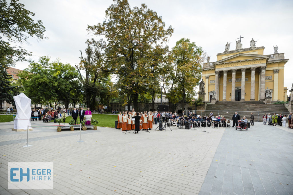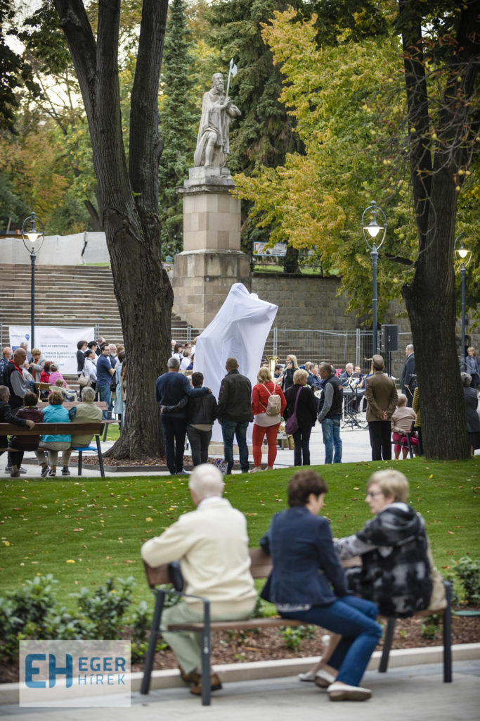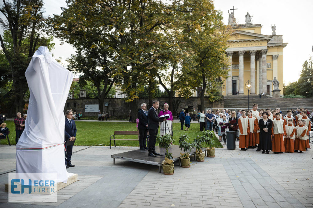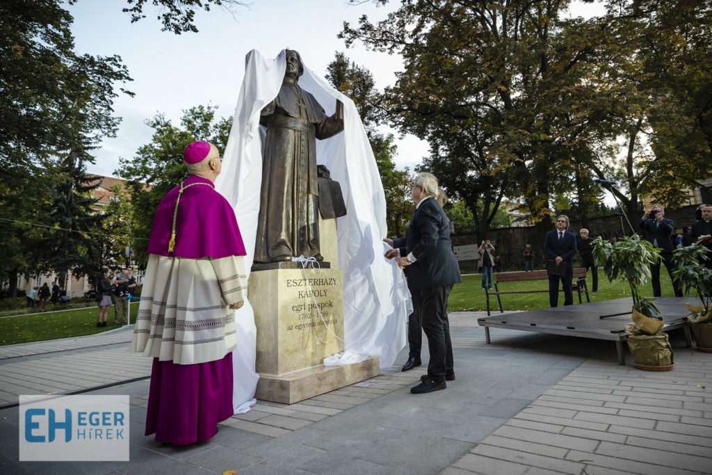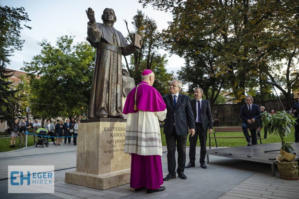 Vasárnap este gróf Eszterházy Károly püspök szobrának leleplezésével, hivatalosan is átadták a felújított Eszterházy teret. A téren Kovács Jenő alkotása mellett egy vízijáték és három, a nemzeti trikolór színeiben világító, úgynevezett okos oszlop is szolgálja a tér látogatóit.
