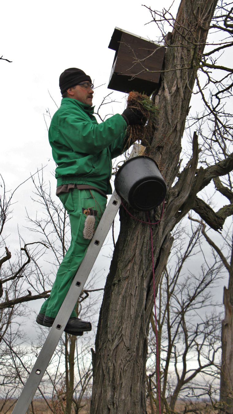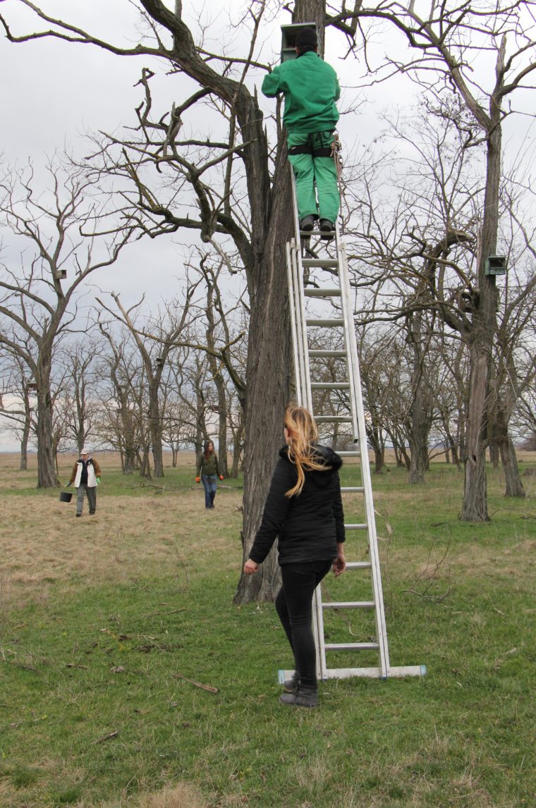 Az önkéntesek a tájvédelmi körzet legnagyobb telepén dolgoztak ahol több fészektípusból közel száz fészek volt. A feladatuk a leromlott költő-alkalmatosságok felújítása, a parazitáktól zsúfolt fészekalapok eltávolítása, frissre cserélése volt. Az egész napos munkának meglett az eredménye – sikerült az összes fészket restaurálni és ezzel megteremteni a sikeres költés feltételeit!