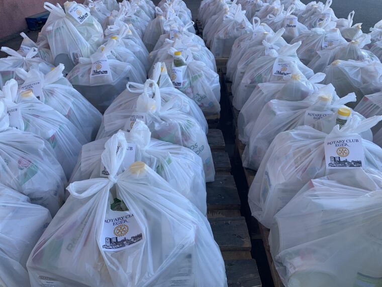 100 csomag tartós élelmiszert ajándékozott az egri Rotary Club a nehéz helyzetben lévő családok részére.