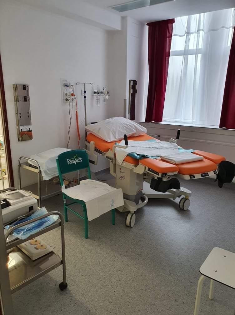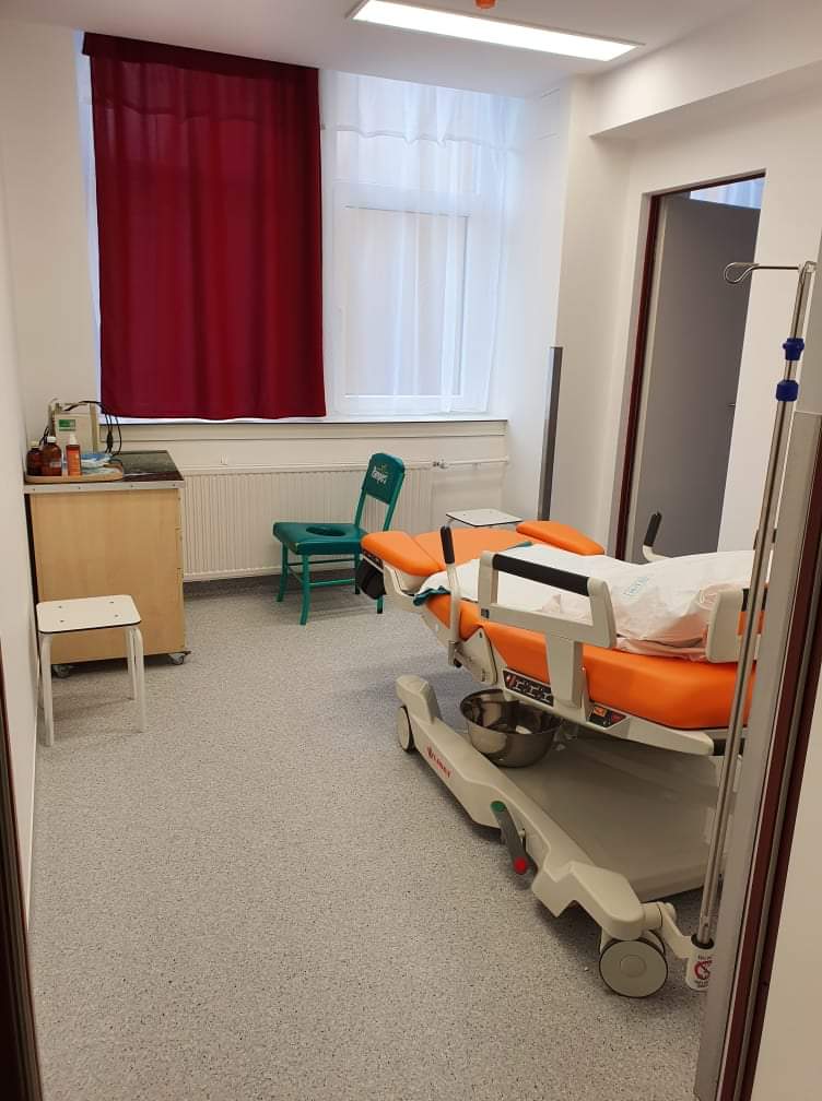 A Szülészet folyosójának elején az ellenőrizetlen mozgások megszüntetése céljából egy beléptető rendszerre kötött új tolóajtó került, ezen ajtó előtt nyílik az előkészítő, melyhez vizesblokk tartozik. A szükséges vizsgálatok ebből az előkészítő helyiségből nyíló vizsgálóban történnek. A szülésnél jelen levő apák számára átöltöző helyiséget is kialakítottak.