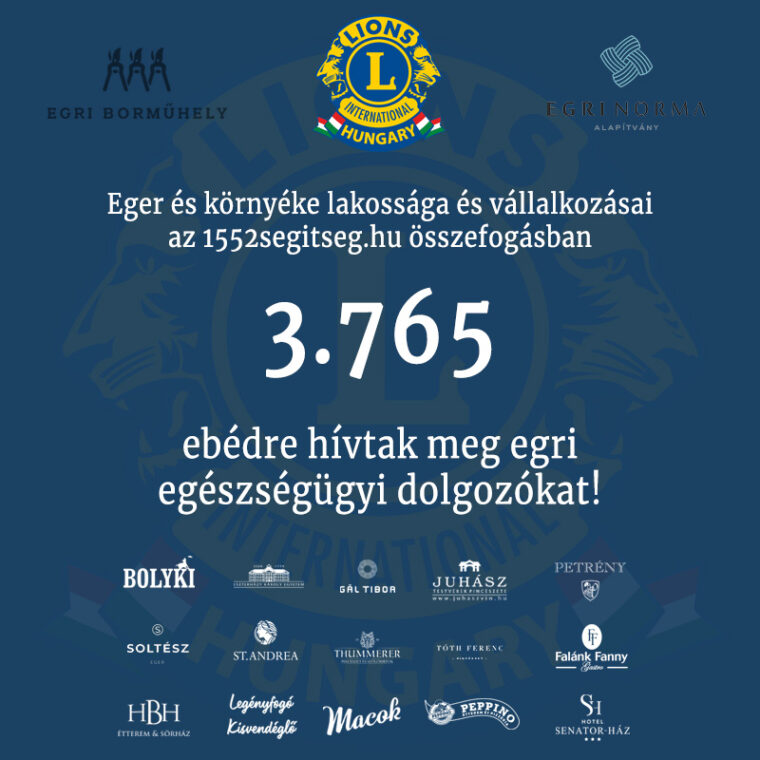 Márciusban indult el az az Eger Lions Club és az Egri Borműhely kezdeményezése, az 1552 Segítség  program azzal a céllal, hogy gondoskodjanak a vírusveszély alatt frontvonalban lévő, helyi egészségügyben dolgozók étkeztetéséről.