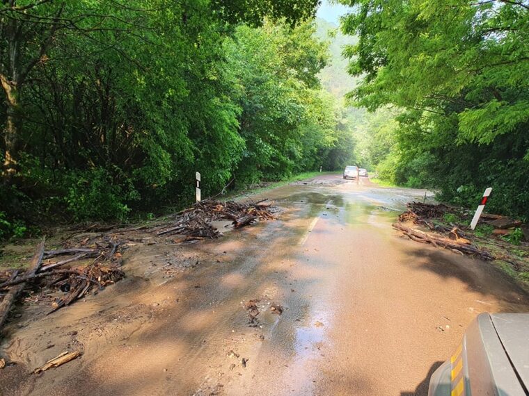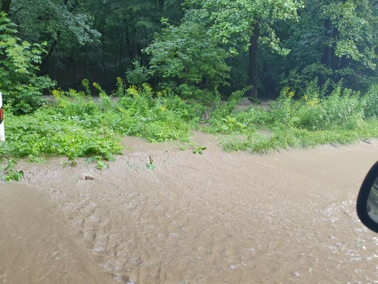 Elöntötte a 25-ös főutat a medréből kilépő Eger-patak – videó