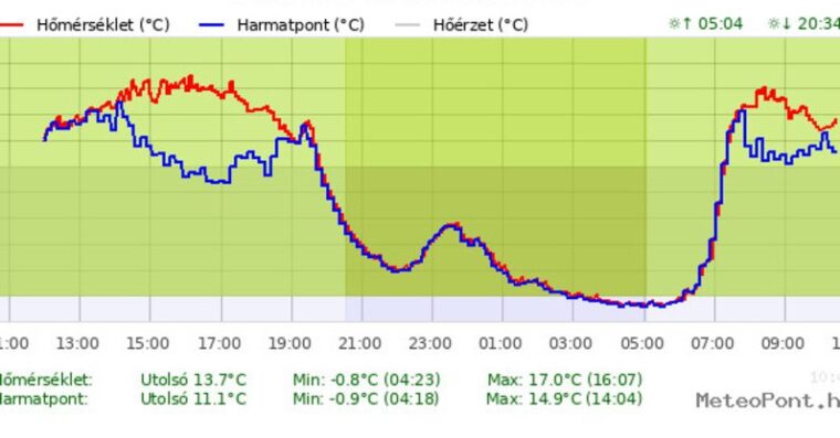 Hétfőre virradóra -0,9 Celsius fokot mértek a fennsíkon. A kitisztult és száraz levegő jelentős mértékben képes lehűlni, ami meg is történt. Ennek eredményeképpen hajnali 4 óra 23 perckor a minimum-hőmérséklet fagypont alá csökkent.