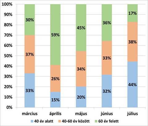 A Semmelweis Egyetem honlapján azt írja, az intézményi fertőzések felszámolásával júniusban a 60 éves, vagy a náluk idősebbek körében jelentősen csökkent a fertőzések száma, júliusban pedig már csak 63 fertőzöttet észleltek ebből a korosztályból. A leginkább veszélyeztetett korosztály aránya az összes fertőzött közül az eddigi legalacsonyabb, mindössze 17 százalékos. Ezzel szemben a 40 év alattiak megbetegedésszáma folyamatosan emelkedik, júliusban már az aktívabb korosztály tette ki a fertőzöttek 44 százalékát – derült ki az intézmény által, országos adatok alapján végzett elemzésből.