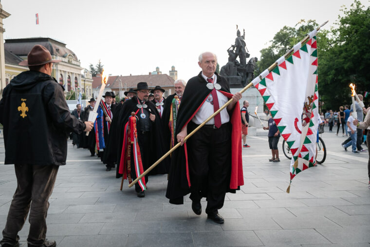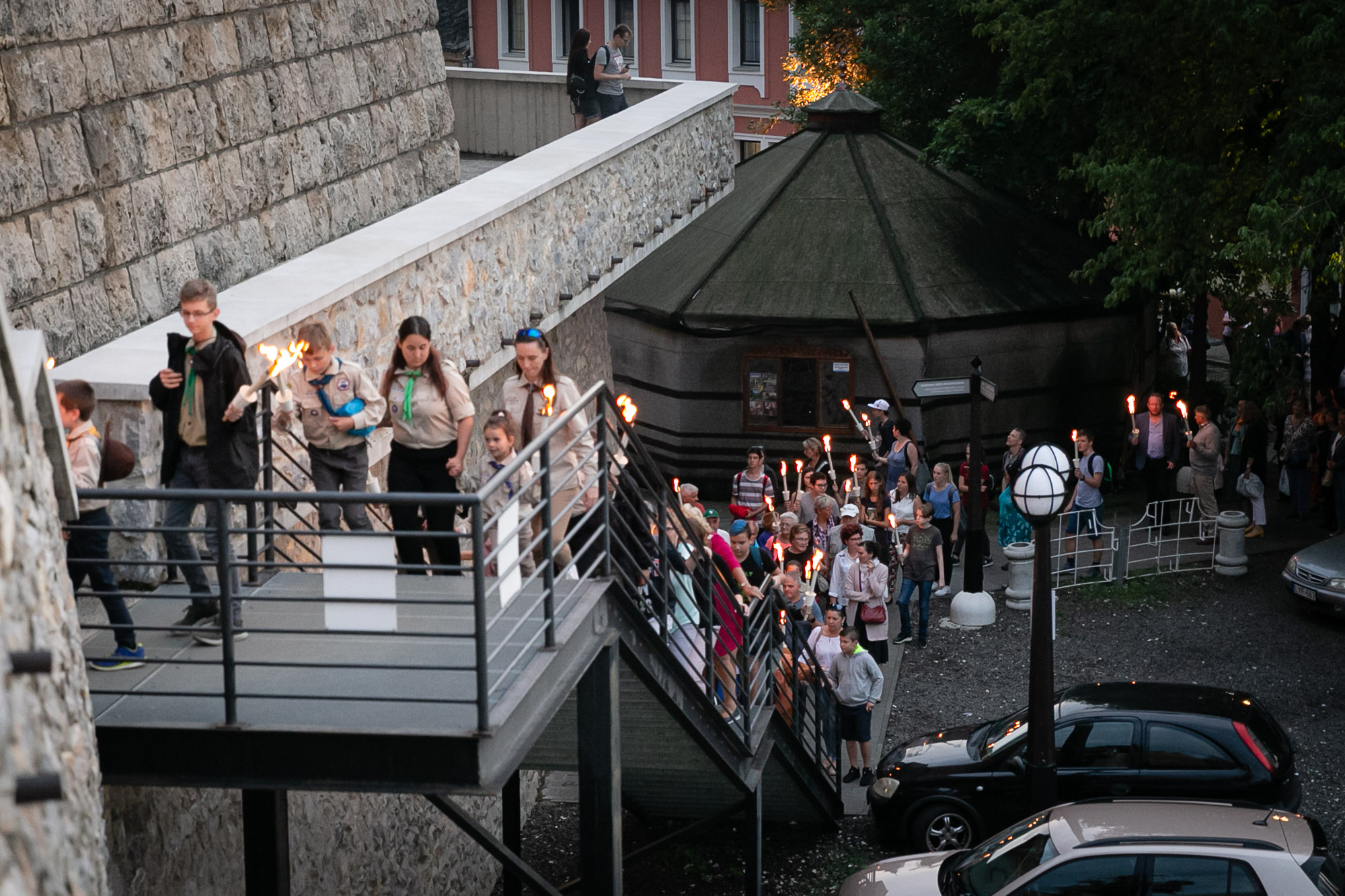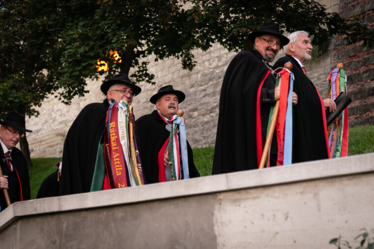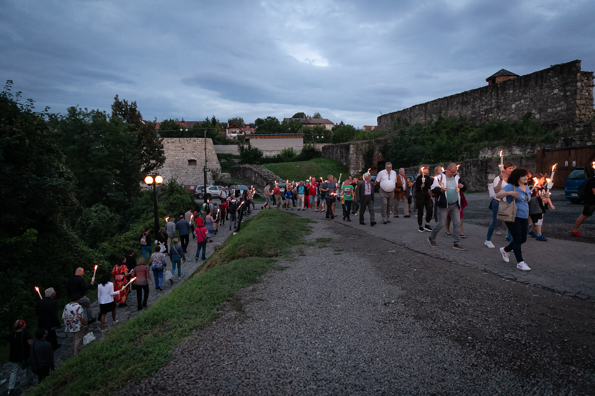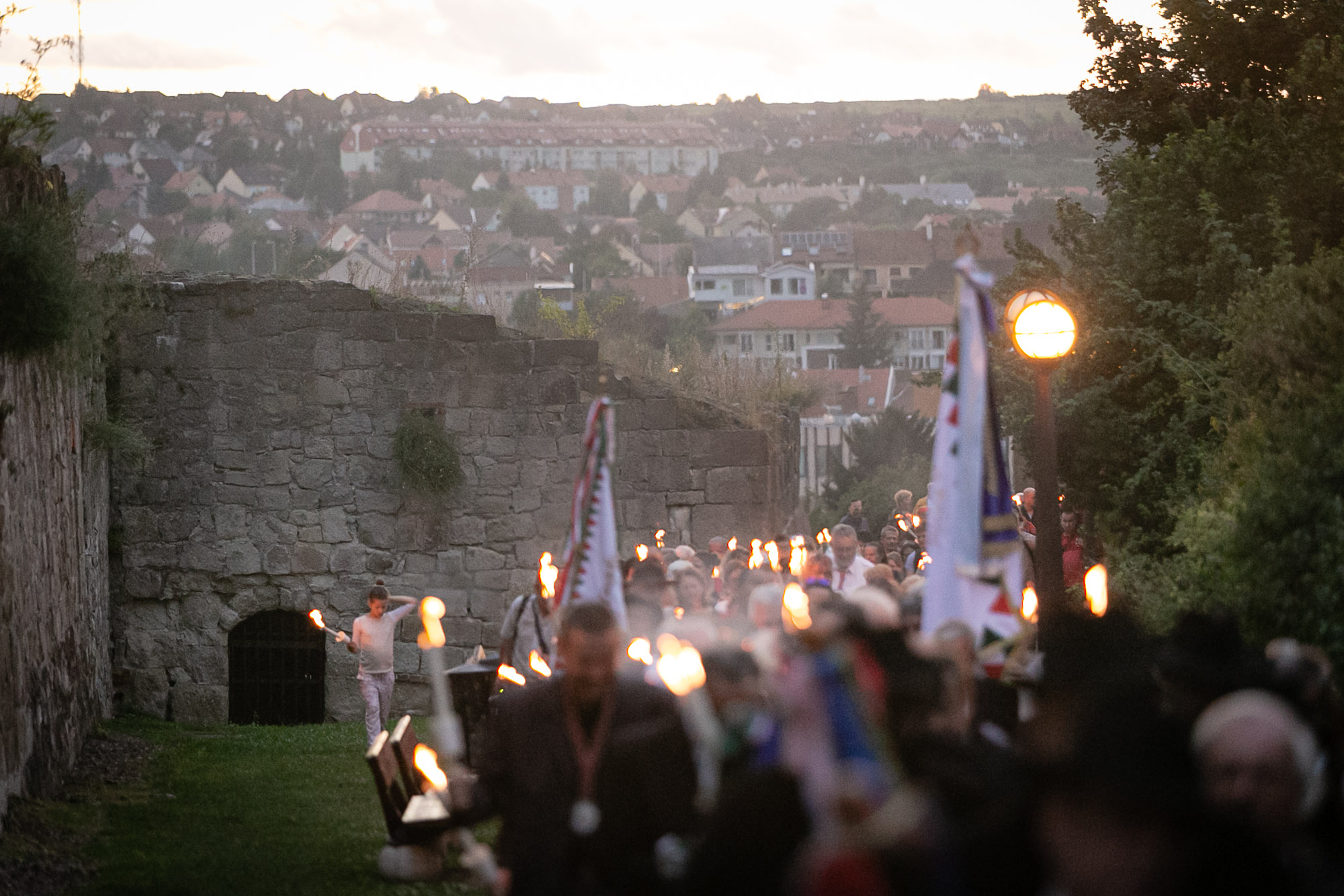 A résztvevők ezután Várkonyi György, a Fertálymesteri Testület Főkapitányának irányításával, fáklyákkal vonultak fel a várba, a Fáklyás Királyköszöntő Ünnepség helyszínére.