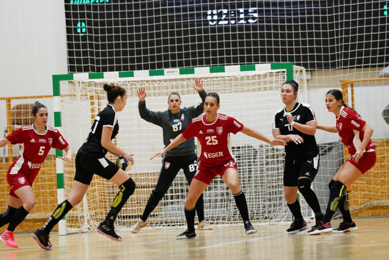 A meccs első részében inkább a piros-feketék domináltak, egy idő után azonban kezdtek egyre inkább belejönni a lányok. Ettől még szorosan alakult a találkozó, csak éppen kezdett világítani az a bizonyos fény az alagút végén. A mieinket segítette az is, hogy hasonlóan a Vasas elleni csörtéhez, itt is villant piros lap az ellenfélnél az első játékrészben. Érdekesség, hogy ismét egy Szecsődi Laurával szemben történt szabálytalanságot láttak súlyosnak a játékvezetők, akik ezért Kovács Krisztinát végleg kiállították.