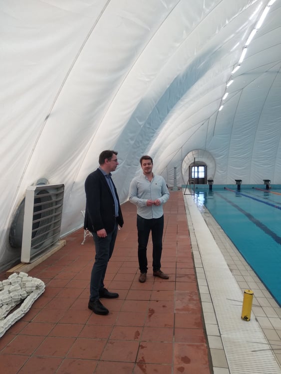 Az eseményen Mirkóczi Ádám polgármester beszámolt arról, hogy a hőlégbefúvó rendszer kielégíti a fiatalok sportolási igényeit. A rendszernek köszönhetően mind a levegő, mind a víz hőmérséklete 26-27 ºC körül tartható – hangsúlyozta ki.