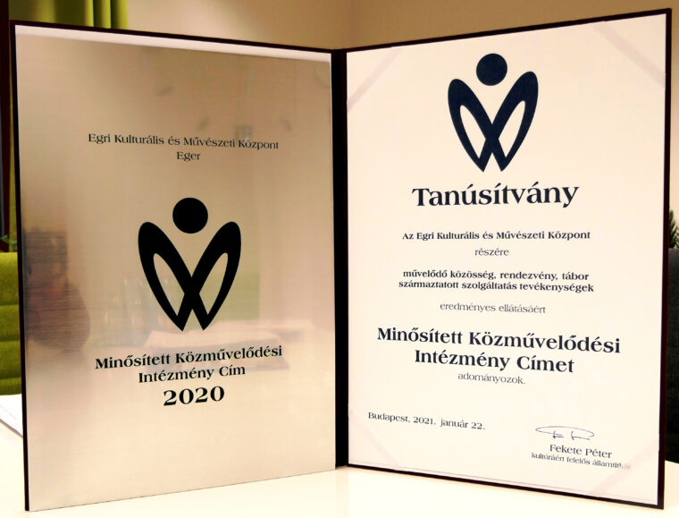 Rangos szakmai elismerésben részesült az Egri Kulturális és Művészeti Központ. Az Emberi Erőforrások Minisztériuma által meghirdetett pályázaton – a 2019/2020-as évet minősítő, kiemelkedő munkája eredményeként – az Egri Kulturális és Művészeti Központ megkapta a „Minősített Közművelődési Intézmény Címet”.