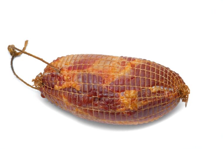 - Ha puhának találjuk, félretesszük és hagyjuk a saját levében teljesen kihűlni, majd kiemeljük, megtörölgetjük, és alufóliába csomagolva a hűtőbe tesszük – legalább fél nap időt hagyjunk a teljes dermedéshez, kifagyáshoz. A kötöző anyagot szeletelés előtt lefejtjük róla.
