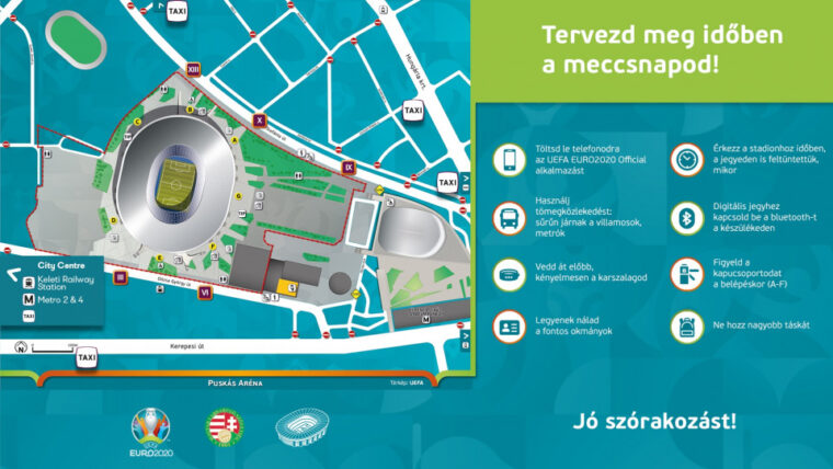 A mérkőzés napján a stadion közelében több száz önkéntes dolgozik, segítve majd a szurkolók tájékozódását, bejutását. Figyelje mindenki az EURO 2020 egyenruhás segítőit, és töltse le az UEFA hivatalos mobilalkalmazását, mely magyar nyelven, és folyamatosan frissülve jeleníti meg a legfontosabb tudnivalókat – írja közleményében a szervezőbizottság. A vidékről érkezőknek érdemes előre megtervezniük az utazásukat, és közösségi közlekedéssel megközelíteni a Puskás Arénát. Az EURO 2020 alkalmazás ebben is segítséget nyújthat.