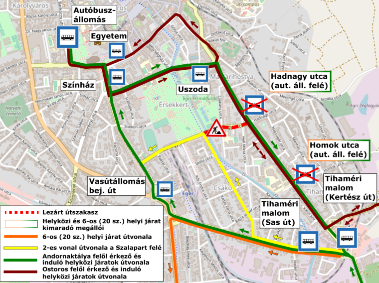 Eger belvárosában a Hadnagy utcában útfelújítási munkálatok miatt útlezárás, és forgalmi rend változás lesz június 23-ától, szerdától – hívja fel rá a figyelmet honlapján a Volánbusz. Az érintett vonalon közlekedő járatok terelt útvonalon közlekednek.