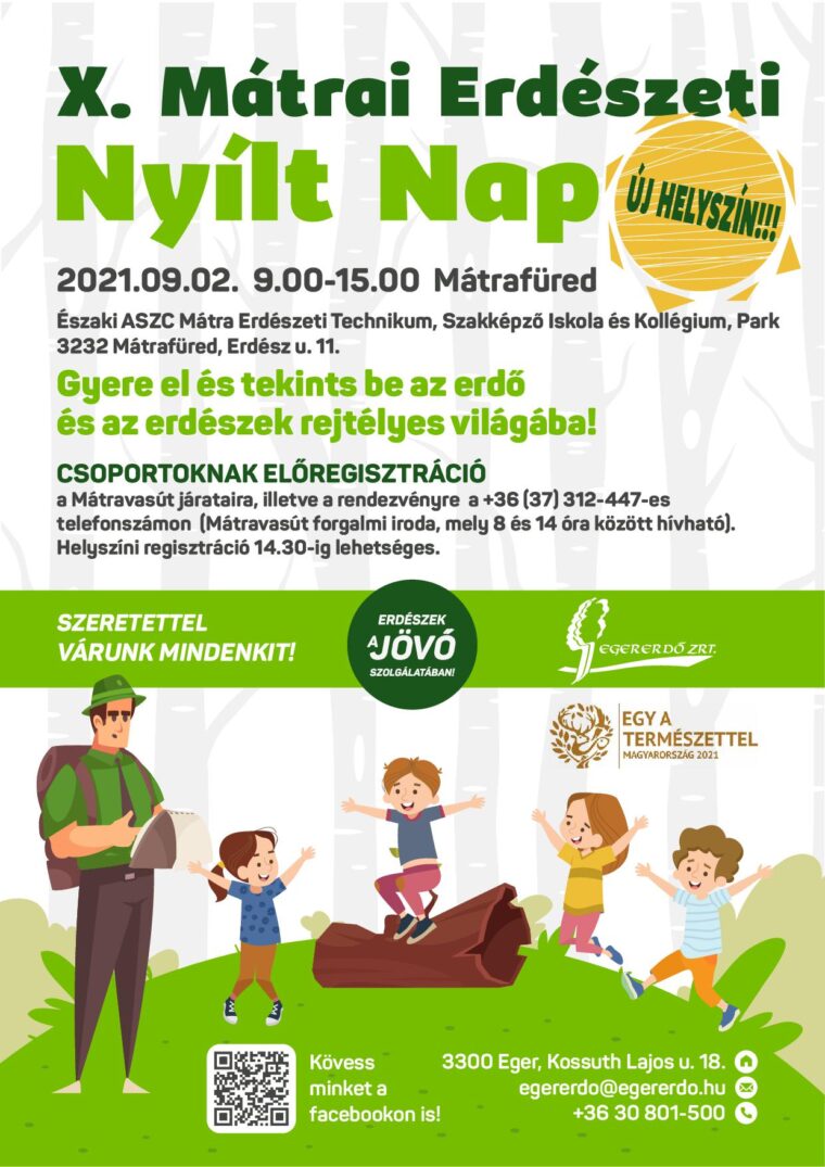 Az iskolaév kezdetén, 2021. szeptember 2-án, a Mátrafüredi Északi ASZC Mátra Erdészeti Technikum, Szakképző Iskola és Kollégium, Parkjában (3232 Mátrafüred, Erdész u. 11.) várják a gyerekeket. Az erdőgazdálkodás és az erdő természeti kincseinek megismerésén túl, itt lehetősége nyílik a gyerekeknek arra is, hogy betekintést nyerjenek az erdészeti oktatási intézmény életébe.