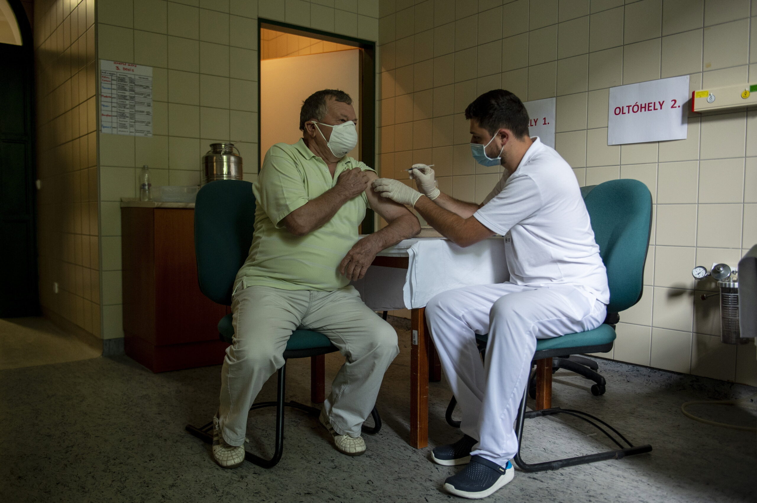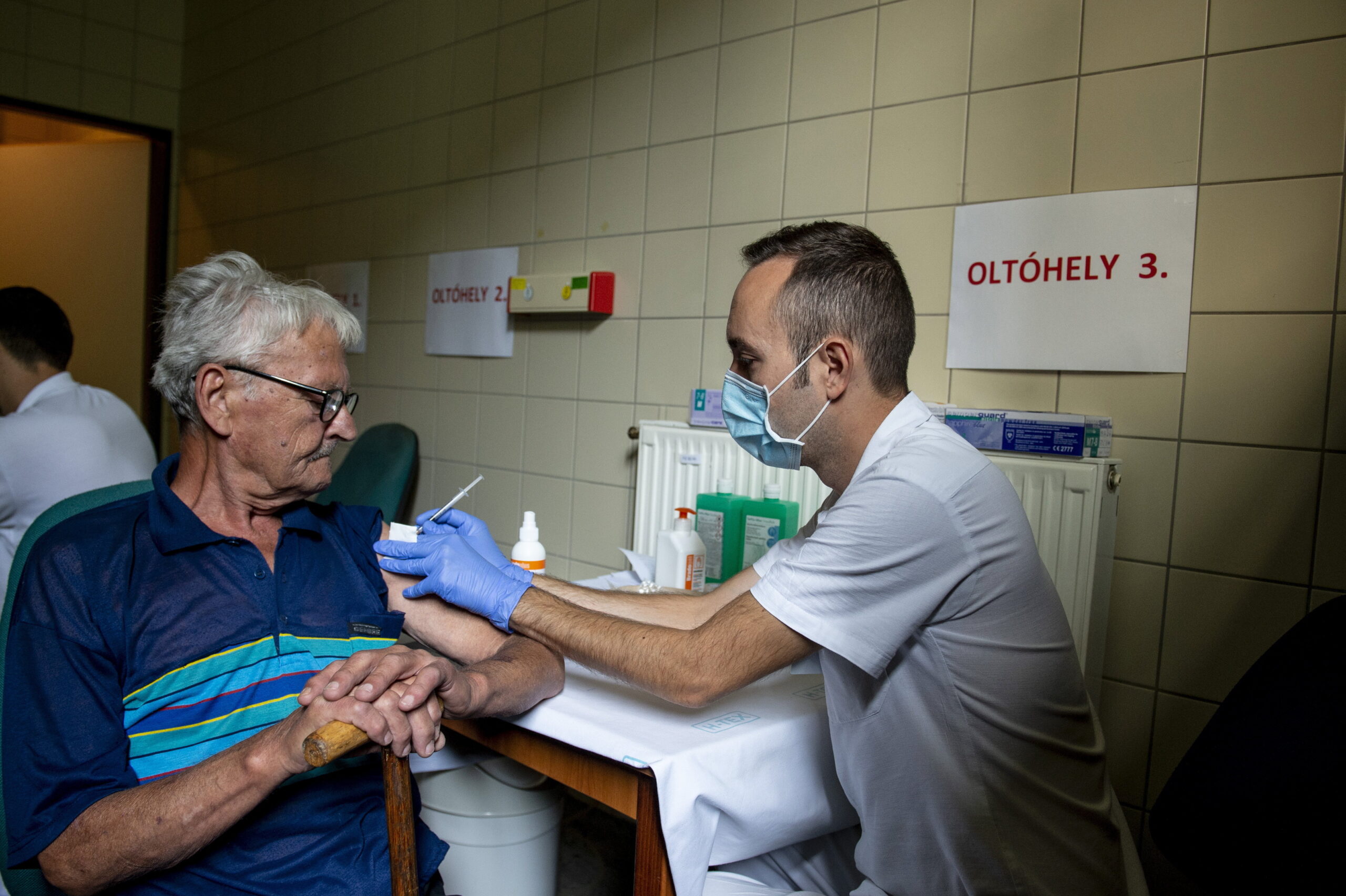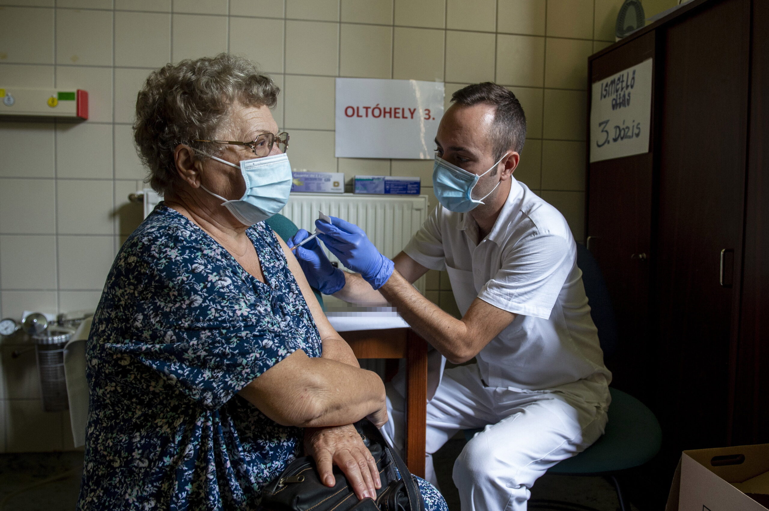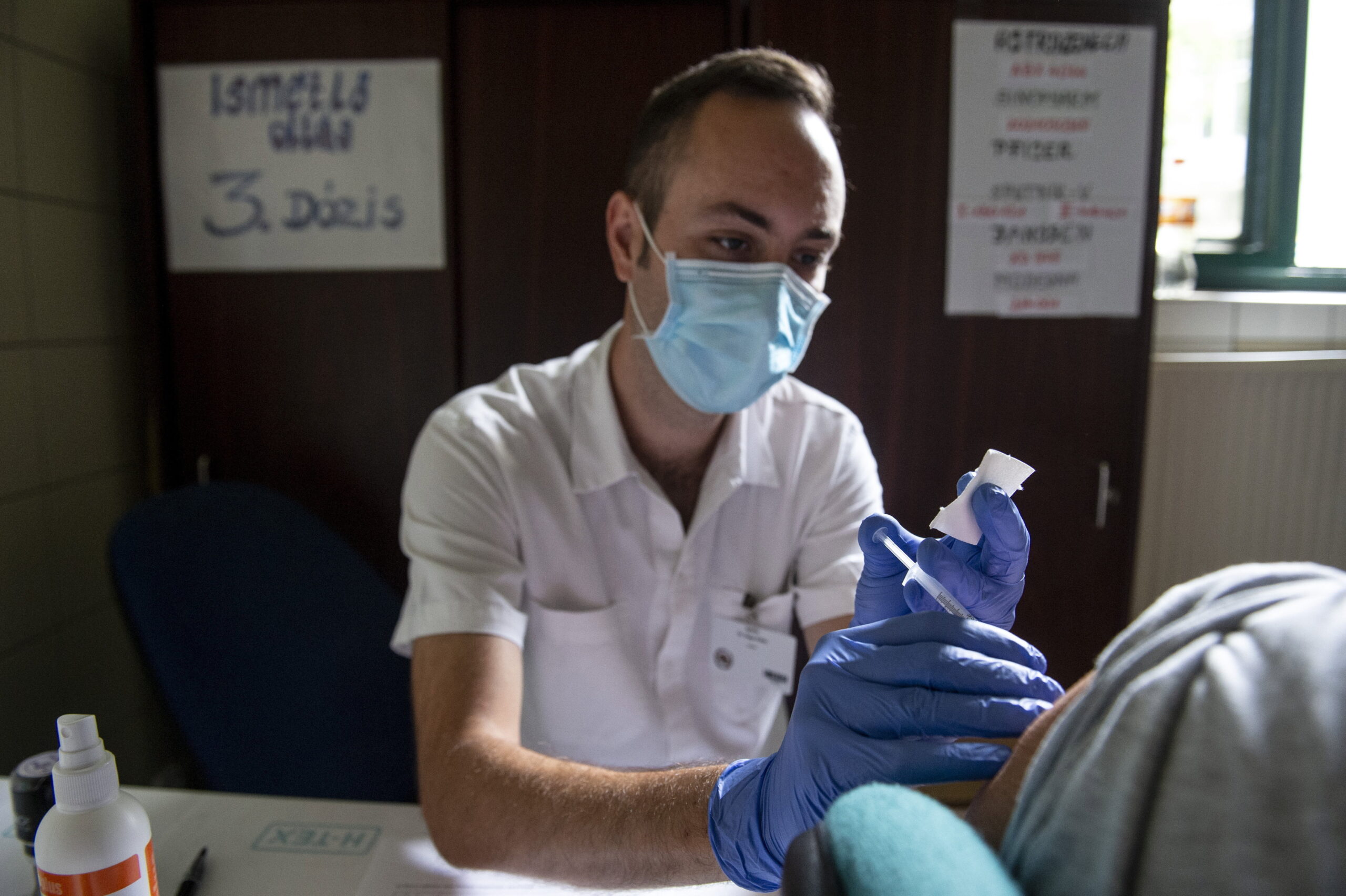 Zajlik a harmadik oltás beadása a kórházi oltóponton Egerben – galéria