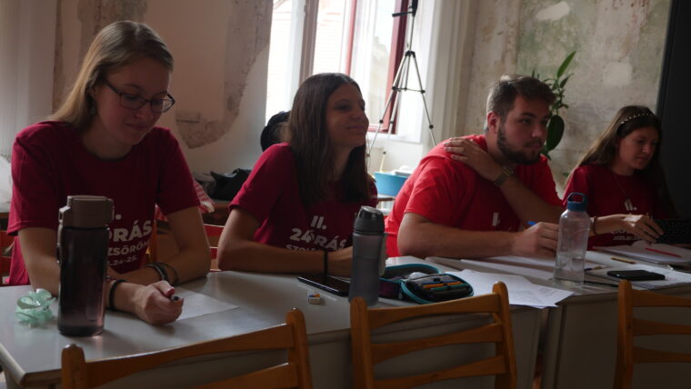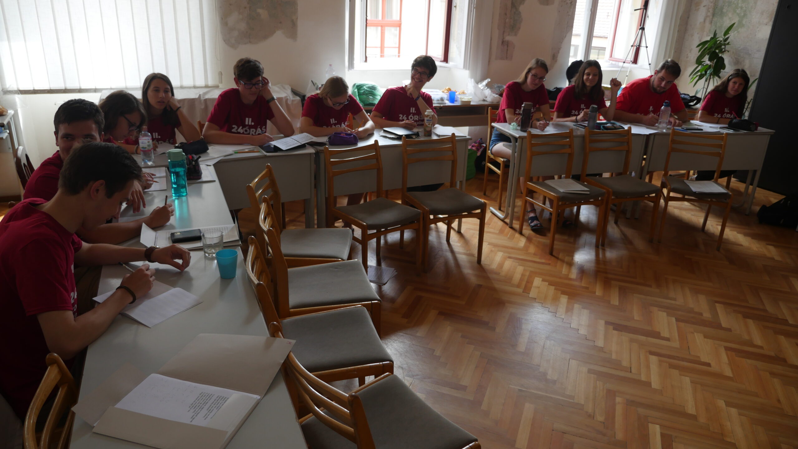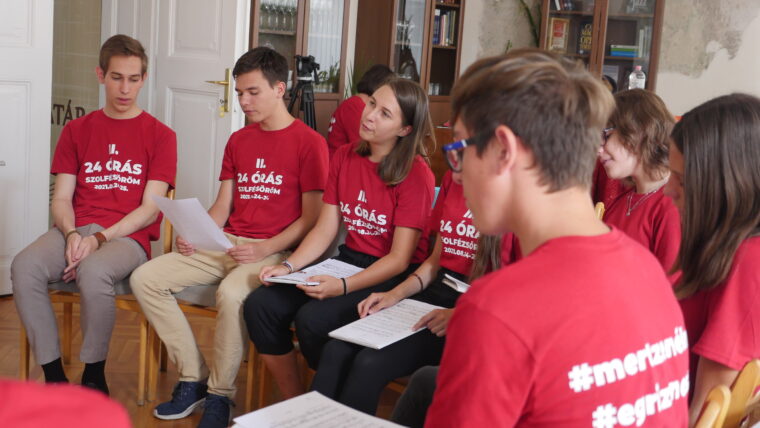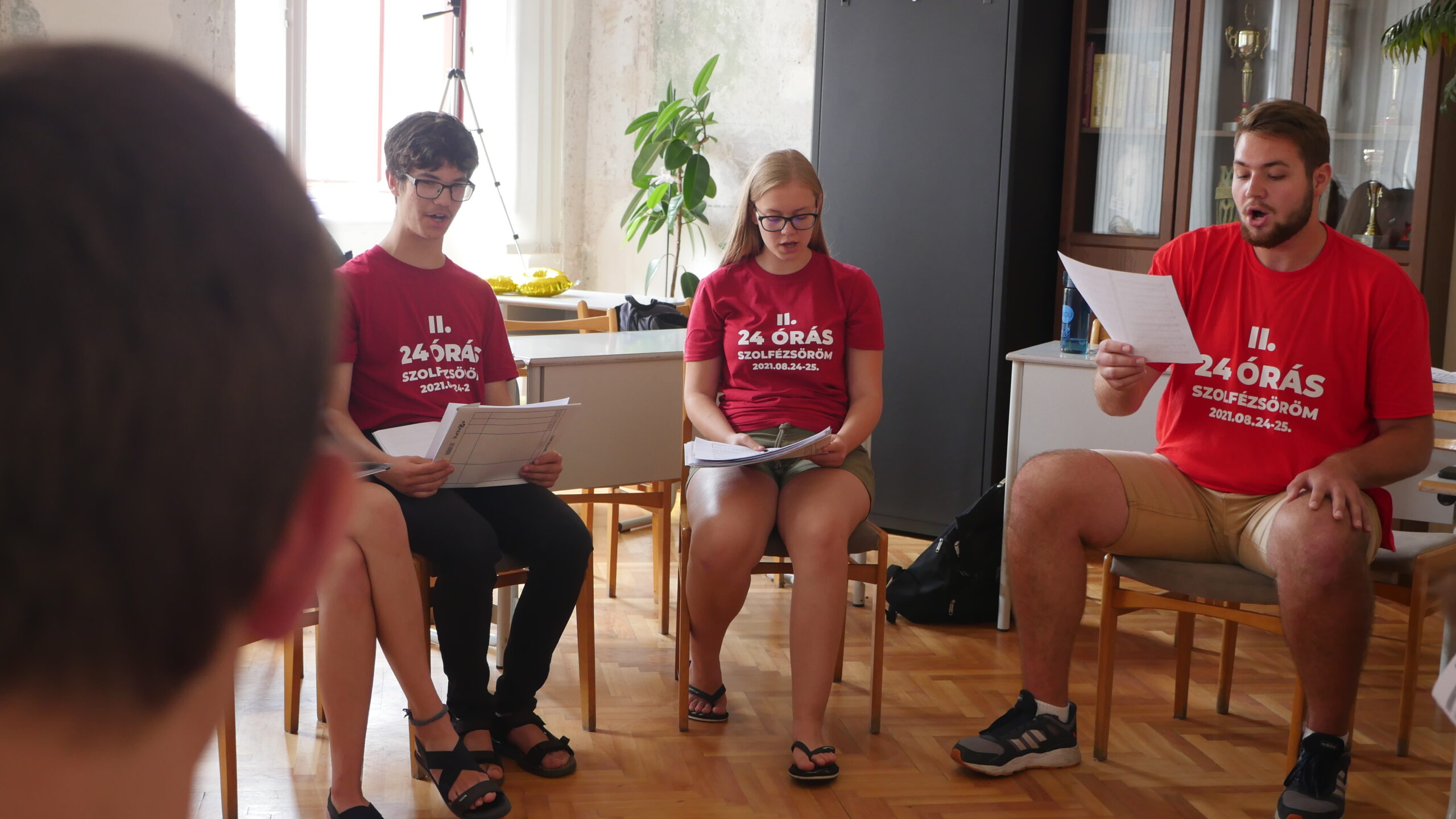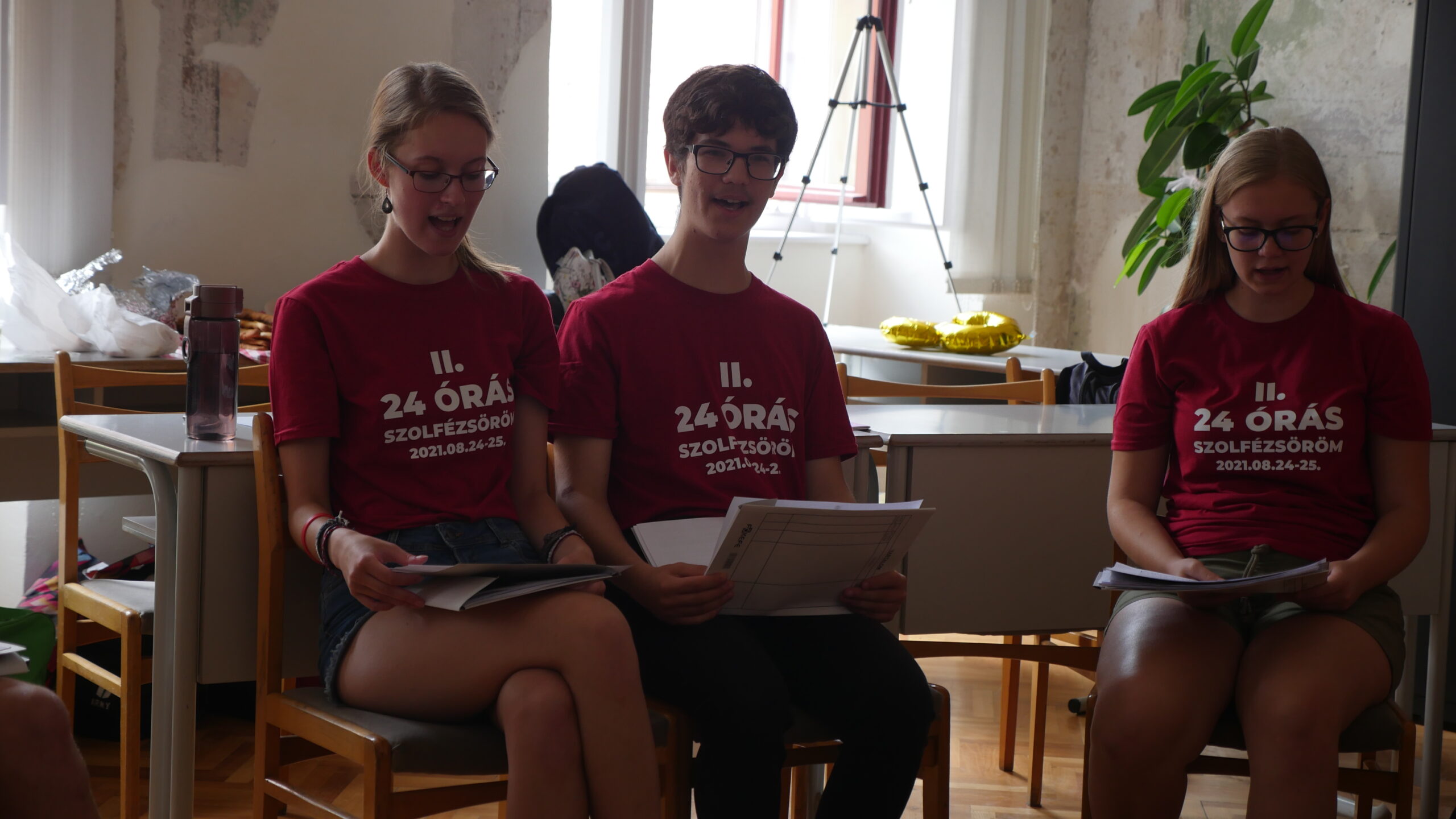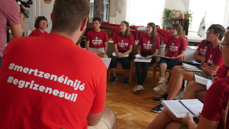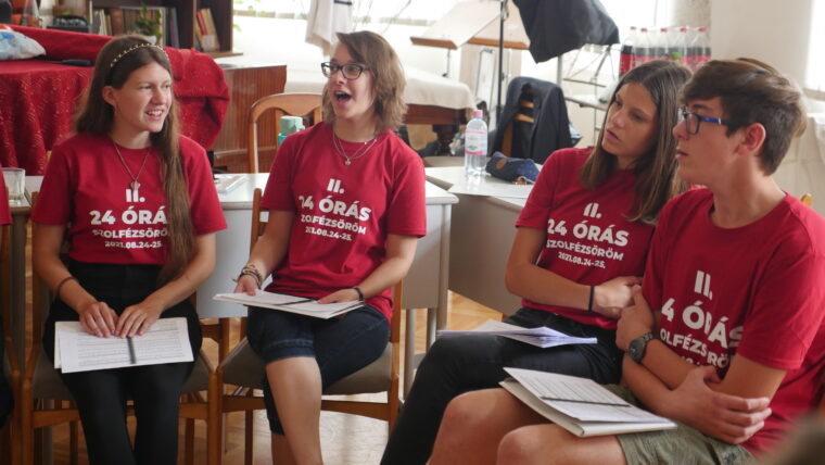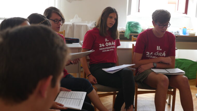 Tizenhárom növendék és tanárnőjük Osztermayerné Bóta Enikő Rita nem kevesebbre vállalkozott, minthogy 24 órán keresztül szinte non-stop szolfézs órát tartanak az Egri Farkas Ferenc Zeneiskolában. Idén második alkalommal döntöttek a rendhagyó tanórák mellett, most a covid járvány sarkallta őket, így próbálják „bepótolni” az elmaradt órákat és a közösségi élményeket. Örömzene ez a javából, bátran mondhatjuk, hiszen ott járunk, fogattunk és tényleg az öröm látszott a részvevők arcán.