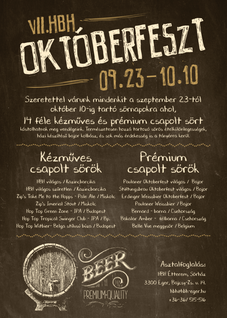 Igaz, hogy ez a program már szeptember végétől elkezdődött, de szeretnénk felhívni a figyelmet, hogy aki eddig kihagyta, ezen a hétvégén még ellátogathat a tradicionális HBH Étterem és Sörházba igazi különleges kézműves és prémium csapolt söröket, illetve sörös ételspecialitásokat kóstolni. Sok érdekesség mellett klasszikus, házi készítésű bajor kolbász is a tányérra kerül, amit utána leöblíthetünk a 14 féle csapolt sör bármelyikével.