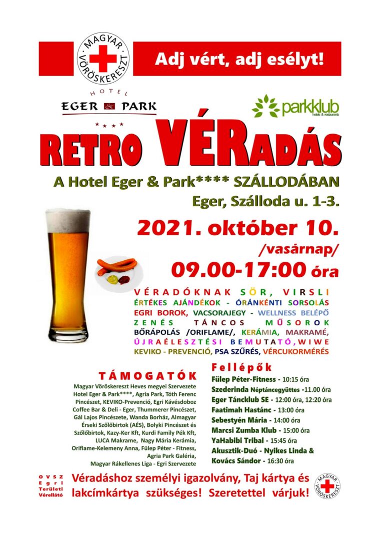 Úgy tartják, egy véradó három ember életét menti meg. Így vasárnap reggel kilenc és délután öt óra között jót cselekedhetünk embertársainkkal, méghozzá retró hangulatban. Minden véradó sört és virslit kap adakozásáért. Emellett számtalan fellépőt, bemutatót, zenés táncos programot tartogatnak számunkra. Óránkénti sorsolás is lesz értékes nyereményekkel!